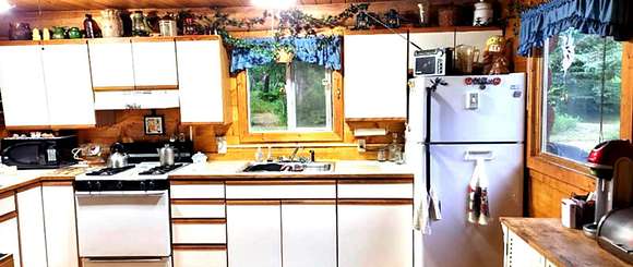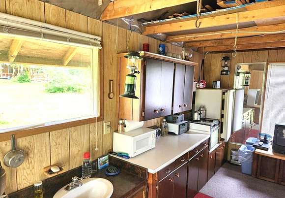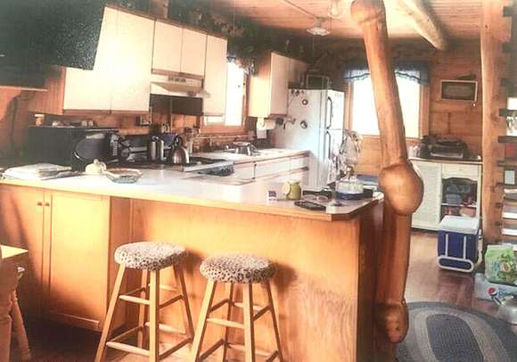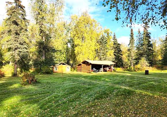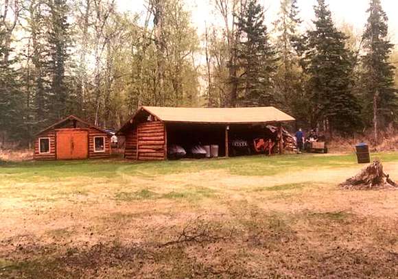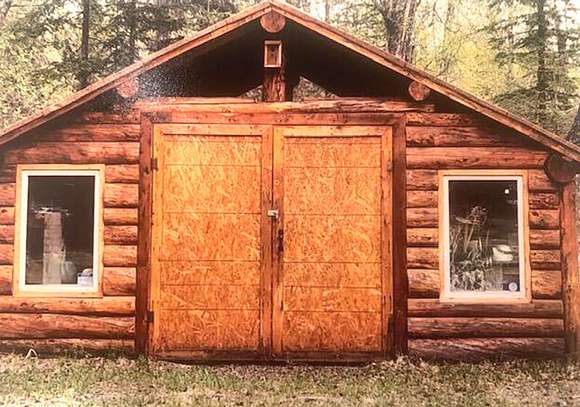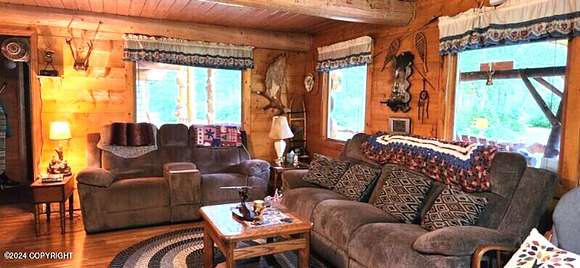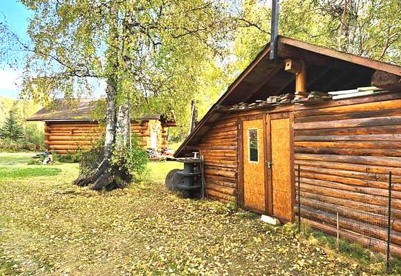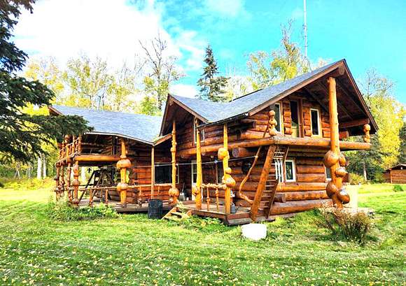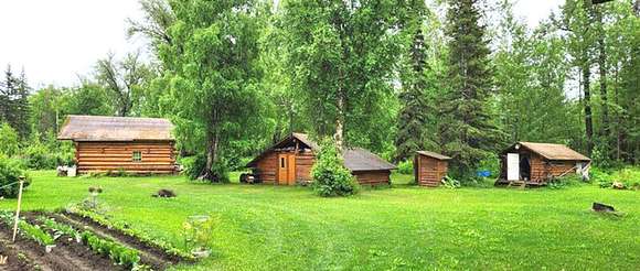 Alaska LOG homed 4 bed/2 bath house & Guest Cabin with 6 out buildings. Main bedroom on the main floor w/Kitchen & living room, W/D, & 3 more bedrooms upstairs. Has solar power.