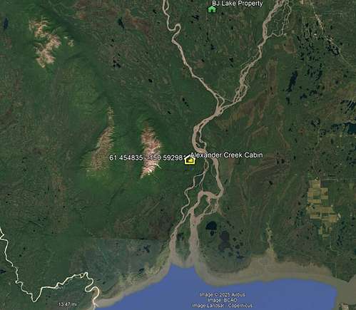 Small aircraft fly in Across Cook Inlet at the base of Mt. Susitna, next to Susitna River. Fly-in either fixed wing or Float plane in Summer, or or snow machine in winter