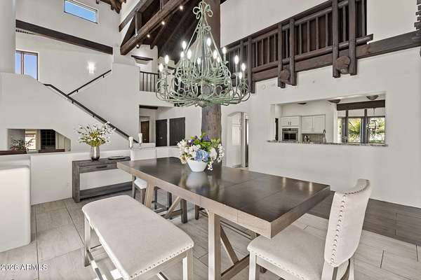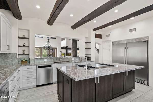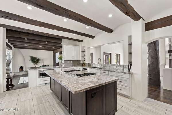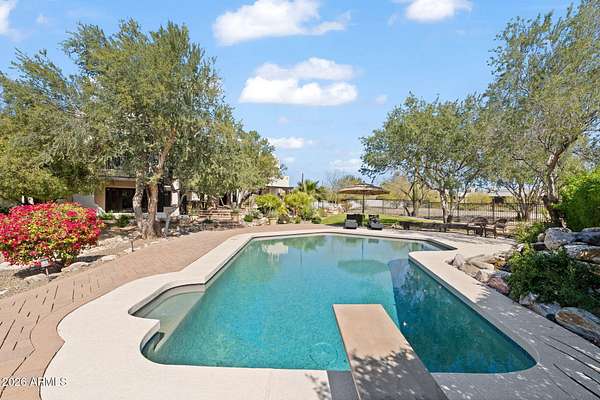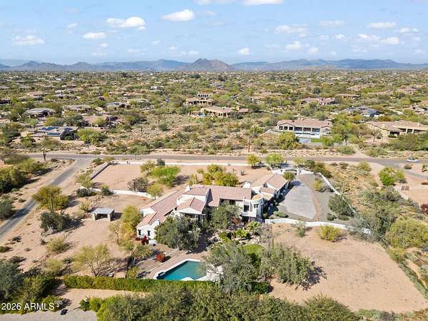 Welcome to a privately gated desert estate set on nearly two pristine acres in the heart of North Scottsdale, where timeless architecture meets exceptional privacy and space. This impressive 6,000+ square-foot residence offers 5 bedrooms and 4 full bathrooms, thoughtfully designed with expansive living spaces, soaring ceilings, and an effortless flow ideal for both elegant entertaining and everyday living. The heart of the home features a spacious chef's kitchen that opens to multiple gathering areas, creating an inviting setting for hosting and relaxing alike. Generous bedroom suites provide comfort and privacy, while large windows frame views of the surrounding desert landscape. Outdoors, the estate transforms into a true Arizona retreat. The resort-inspired backyard showcases a sparkling diving pool, lush lawn areas, and a fully equipped outdoor kitchen, perfect for unforgettable gatherings under the desert sky. A private gated entrance, long drive, and 3-car garage complete the sense of arrival and exclusivity. Ideally located near Scottsdale Road and Pinnacle Peak, this remarkable property offers the rare opportunity to enjoy space, privacy, and luxury living in one of North Scottsdale's most desirable settings.