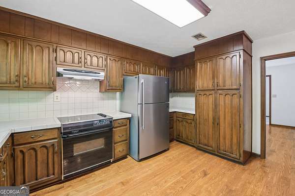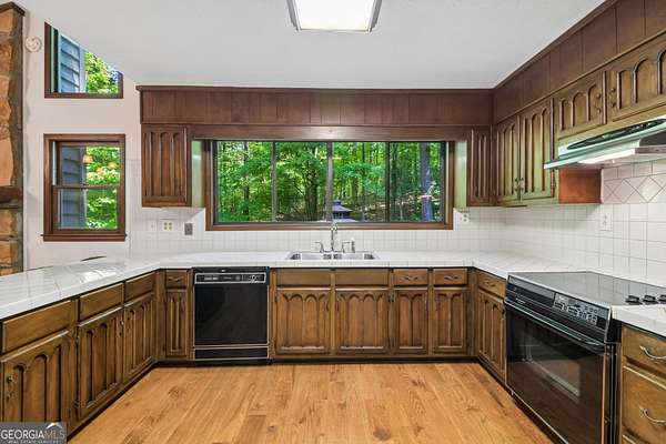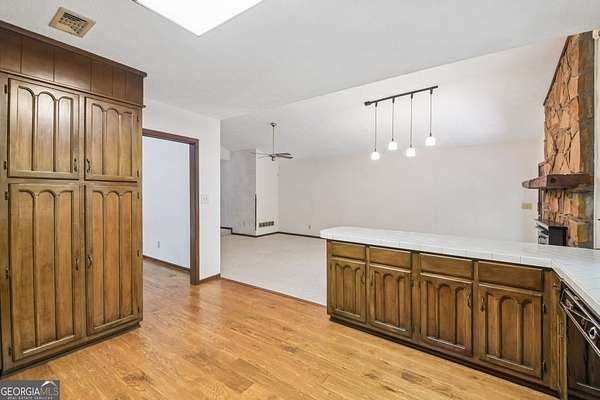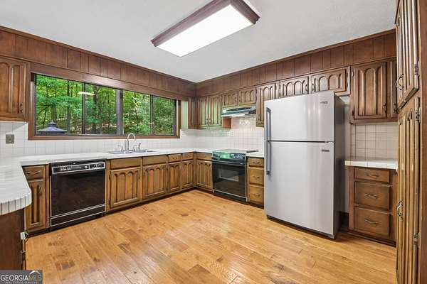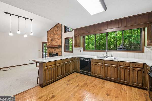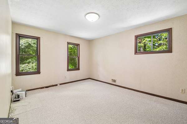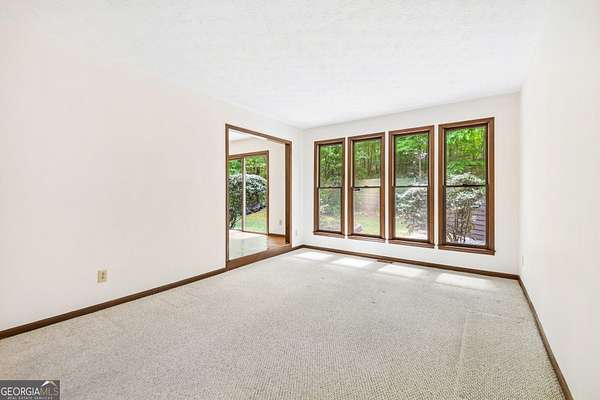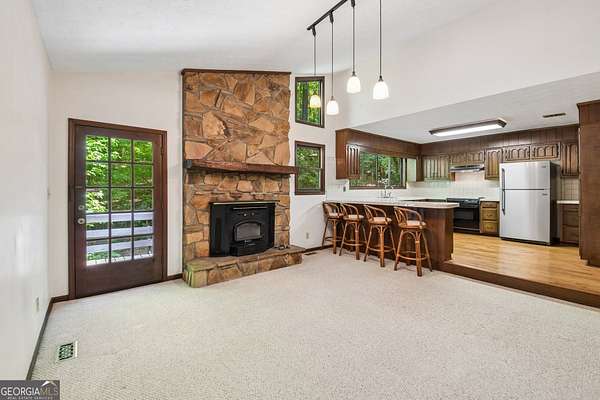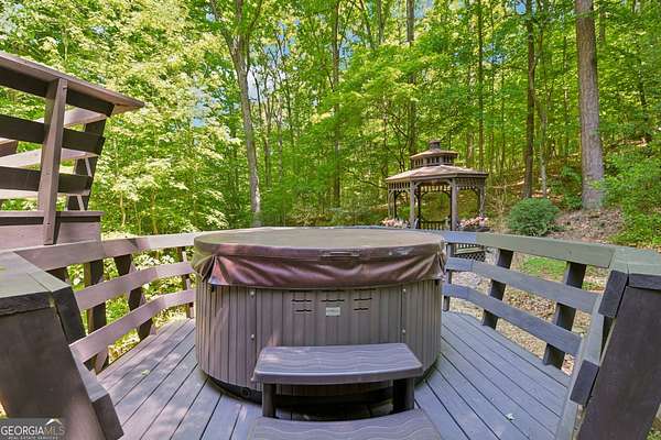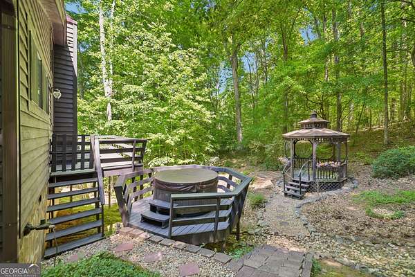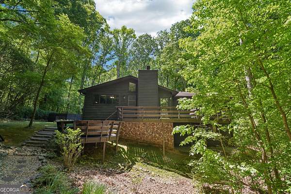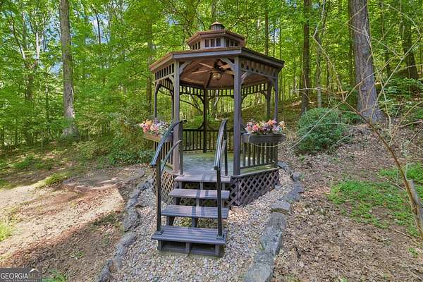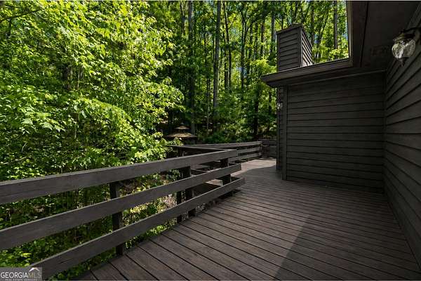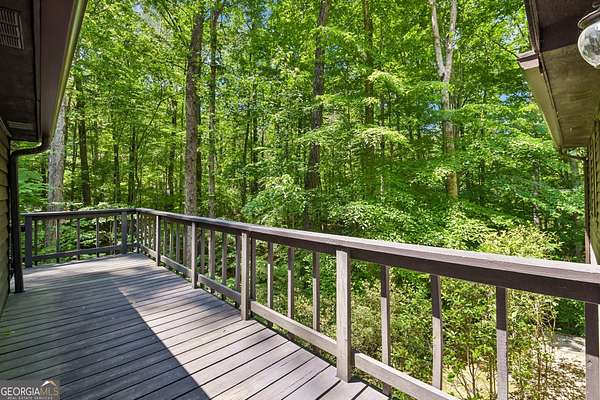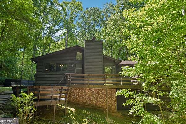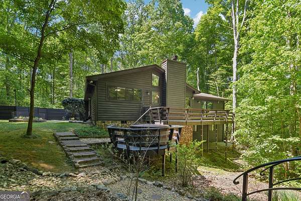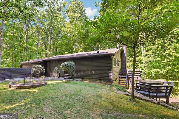 Escape to Your Own Private Sanctuary, Just Minutes from Everything! Tucked behind a private gated entry and nestled on over 5 acres of lush, wooded landscape, this impeccably maintained Mid-Century Modern ranch offers a rare blend of tranquility, character, and unbeatable convenience. All of this, less than 20 minutes from Hartsfield-Jackson Atlanta International Airport. From the moment you arrive, the natural surroundings set the tone. Mature hardwoods frame every view, creating a level of privacy that feels worlds away from the city, yet shopping, dining, and major thoroughfares are just moments from your door. Step inside and be greeted by soaring vaulted ceilings, warm natural light, and the unmistakable charm of true Mid-Century Modern design. The dramatic floor-to-ceiling stacked stone fireplace with wood-burning insert anchors the main living area, creating a cozy focal point that is equal parts functional and stunning. The open layout flows effortlessly into a massive country kitchen boasting an abundance of rich wood cabinetry, generous counter space, and storage that will delight even the most serious home chef, all with picturesque wooded views through every window. The sprawling ranch-style floor plan offers comfortable, single-level living with well-proportioned bedrooms, multiple bathrooms, and a daylight walkout basement that presents endless potential. Finish it to suit your vision, whether that is a home theater, gym, in-law suite, or additional living space. Outside, your private retreat continues. Unwind in the hot tub, gather under the charming gazebo, or simply enjoy the peace and serenity of your own wooded acres. The stone hardscaping, multi-level decking, and mature landscaping make outdoor entertaining a joy in every season. If you have been searching for that perfect balance of space, serenity, and convenience, this is the one worth seeing in person.