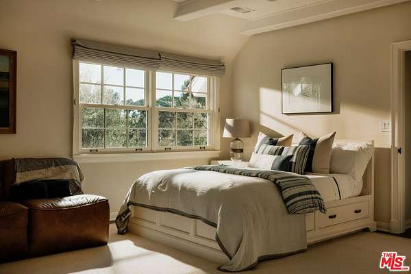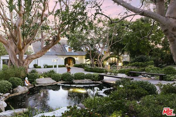 Nestled at the pinnacle of Point Dume's most coveted street lies this extraordinary private estate. Secluded behind gates, atop a majestic ocean bluff, architect Peter Choate's masterful design reveals a seven-bedroom, six-bathroom residence on 1.5+ acres. With pristine beauty this unparalleled sanctuary boasts orchards, gardens, a pool, and a private door to exclusive Little Dume Beach Access. Upon arrival, guests are greeted by majestic coral trees and cascading bougainvillea leading to the 100-foot driveway, lined with mature eucalyptus trees and pots of illuminated white roses, with a bridge over babbling brooks and serene ponds. The farmhouse-inspired facade in fresh white, complemented by a slate tile roof and copper accents, exudes elegance. Inside, panoramic views of the ocean, Catalina Island, and lush orchards captivate. Oak wood floors and French doors enhance the seamless indoor-outdoor lifestyle. The chef's kitchen dazzles with white cabinetry, a Wolf six-burner range, Sub-Zero refrigerator, wine refrigerator, and honed Calcutta marble countertops. Nautical-inspired brass fixtures illuminate the space, complementing a charming eat-in nook with a curved built-in bench. The gracious living room features a wood-burning fireplace and beamed ceilings, opening to an outdoor paradise. Manicured lawns, specimen trees, and landscaped orchards surround a pool, a bluestone gas firepit, with ocean-view decks that provide an idyllic setting for entertaining. Upstairs, the tranquil primary suite boasts dramatic ocean views, 11-foot ceilings with wood beams, and a gas fireplace. Four additional bedrooms offer unique features such as Juliet balconies and dormer windows, each capturing breathtaking vistas. This estate epitomizes the coveted Point Dume lifestyle, blending unparalleled luxury with natural beauty and exclusive amenities offering a rare opportunity to embrace coastal living at its finest. Additional highlights include a laundry room, guest suites with garden views, a sunlit conservatory and property generator. This rare wonderland promises an unparalleled Malibu experience.
