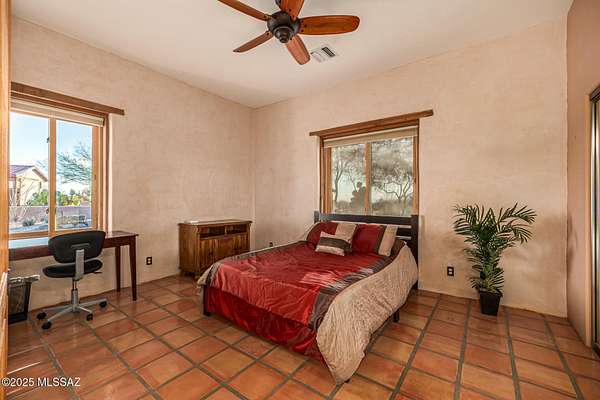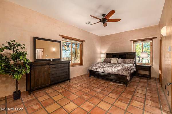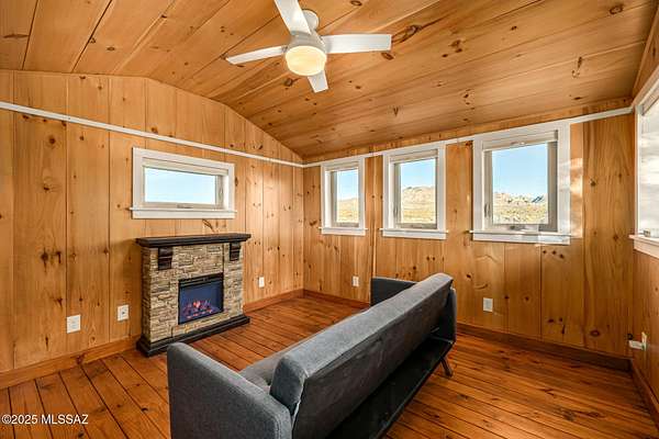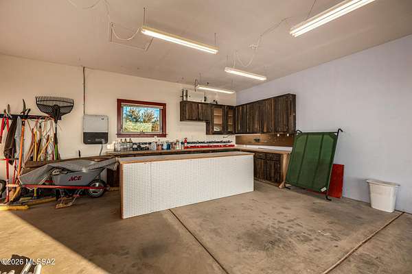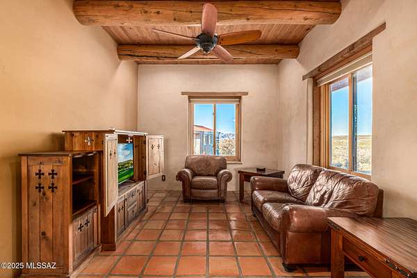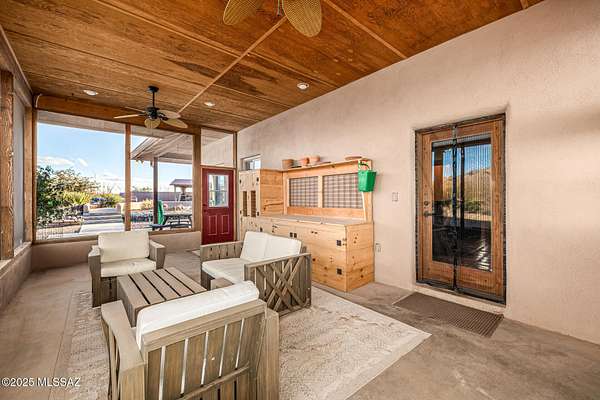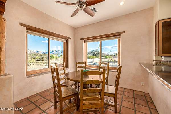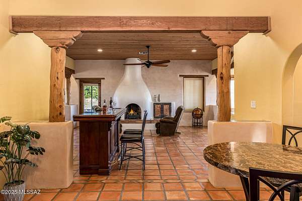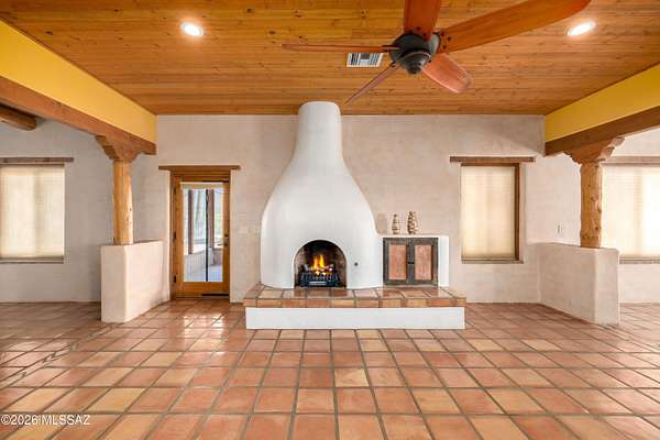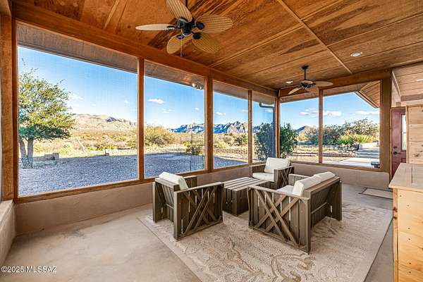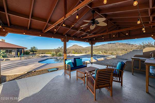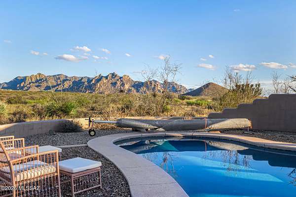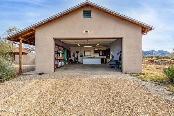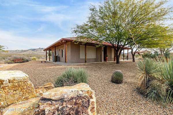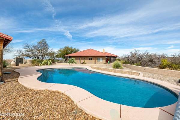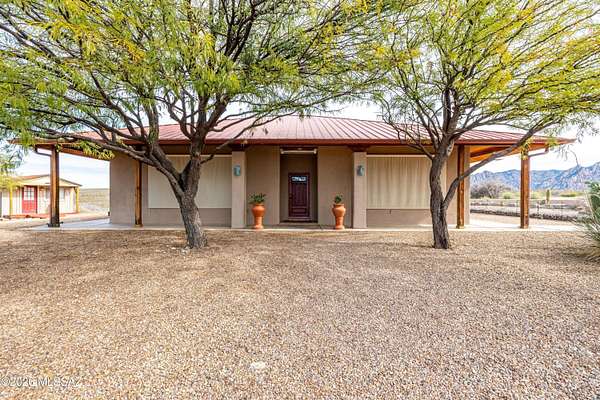 Backed up to state land, enjoy privacy and unobstructed views of the Dragoon Mountains. Impeccably maintained home on 36 acre horse property with gated entrance, detached garage/workshop, new in-ground pool, outdoor covered kitchen area, horse pen, shed, Arizona room and detached building with its own fireplace and AC perfect as a guest or office space. Inside boasts sizable living spaces featuring Saltillo tile and wood beams. Tongue and groove ceilings and thick adobe walls allow better insulation in the summer, while heated flooring and a beehive fireplace ensure cozy winter evenings. Enjoy benefits of having your own pedestrian access gate to state land, fenced pasture, private well, propane tank, as well as, owned solar and water softener systems.