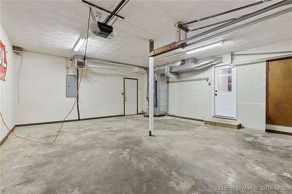 This well-maintained and thoughtfully updated 3-bedroom, 2-bath home offers peaceful country living with an Elizabeth address while being located in Floyd County. Situated on 1.55 acres and backing to serene wooded views, this move-in-ready property reflects true pride of ownership throughout. The main level features hardwood flooring in the living room and an updated kitchen with walkout access to the back patio perfect for enjoying the spacious, fenced-in backyard. Energy-efficient upgrades include triple-pane windows and foam insulation, helping provide year-round comfort. Exceptional garage and storage space abound with a 30x40 detached pole barn featuring 220-amp service, along with a 2-car attached garage. The home is wired for a generator and includes a 220-amp electrical panel update completed in 2023. Recent updates include new siding on the rear and select sides, custom built-in wall cabinetry, fresh interior paint, and two dedicated 20-amp basement circuits. In 2025, a new roof was installed, and the basement received a new HVAC system, new subflooring, heavy-duty structural supports, and updated flooring. Sq ft & rm sz approx