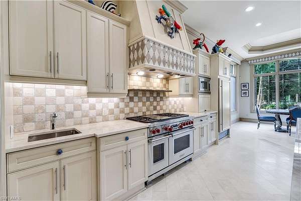 A triumph of architectural brilliance, this Stofft Cooney-designed estate-masterfully curated and constructed by Borelli-shimmers with couture style, sophisticated detailing, and world-class refinement. Set on approximately two acres in the coveted Pine Ridge enclave, this extraordinary residence delivers pure luxury at every turn, offering the amenities, craftsmanship, and presence expected in a home of this caliber. Graceful, light-filled living spaces flow effortlessly throughout, with each room intentionally positioned for exceptional entertaining and elevated everyday living. The beautifully renovated chef's kitchen serves as the heart of the home-pairing fresh, modern design with high-end functionality-and is complemented by a remarkable 3,000-bottle, temperature-controlled wine room, an oenophile's dream perfectly suited for intimate tastings or grand gatherings. A private attached apartment provides both convenience and comfort for extended-stay guests or multigenerational living. Refined elegance abounds in the custom lighting, including exquisite Murano glass fixtures, along with artfully designed niches, millwork, and built-ins that elevate every corner of the home. The truly awe-inspiring grounds complete the experience, featuring a tropical-resort-style swimming pool, tennis/pickleball court, and a romantic gazebo that enhances the estate's serene, sanctuary-like ambiance. A separate guest house-could be used as an art studio-offers its own kitchen, bath, and living area, ensuring guests are graciously and luxuriously accommodated. Car enthusiasts will appreciate the four-car, air-conditioned garage, while the gated circular driveway sets the tone for the grandeur that follows. This is more than a home-this is luxury living in Naples perfected.