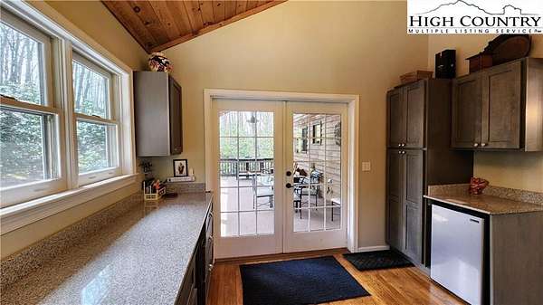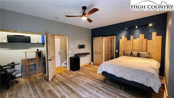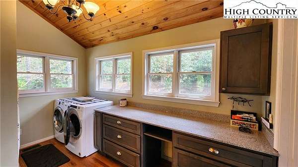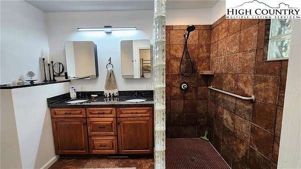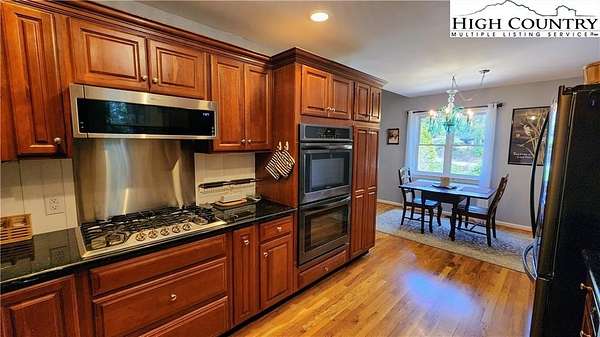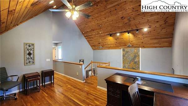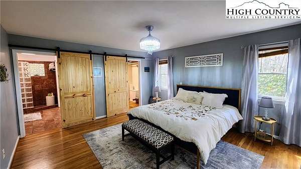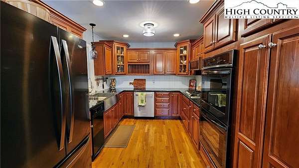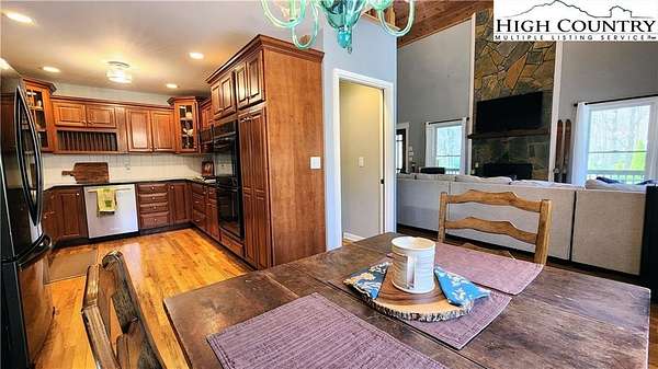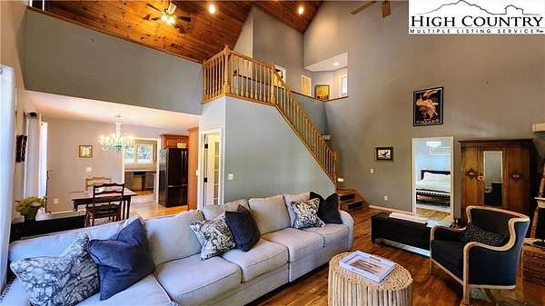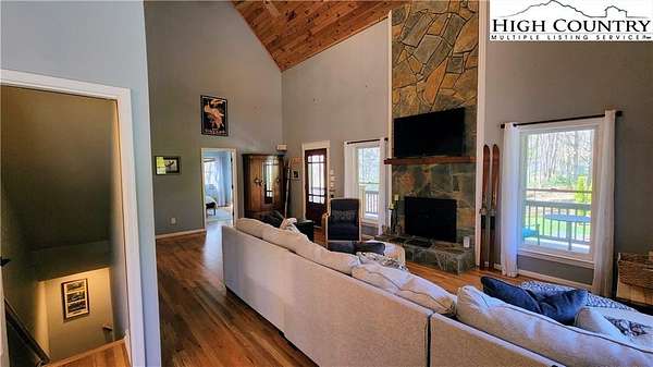 No HOA, No covenants, No restrictions. This beautifully maintained home offers the rare combination of usable acreage and a convenient location. With level entry, expansive outdoor living spaces, and a thoughtfully designed layout, this property is ideal for both full time living and a mountain retreat. The main level features an open living area centered around a stunning stone fireplace, flowing seamlessly into a well appointed kitchen with custom cherry cabinetry, high end appliances, a butlers pantry, under cabinet refrigerator, and wine cooler. Hardwood floors run throughout the main living spaces, adding warmth and character. The home offers two primary suites, one on the main level and one on the lower level, both with private baths featuring heated floors, tiled showers, heated towel racks, and upgraded finishes. The main level suite also includes a free-standing tub, double vanities with granite counters, and a spacious walk in closet. The upper level overlooks the living room and provides flexible space for an office, guest bedroom, bonus room, and full bath. The recently remodeled lower level adds even more functional living space, perfect for guests, entertaining, or a private retreat. Outdoor living is where this property truly shines, with two covered porches, a lower level patio, large usable yard, fire pit, and pond. The property also includes a two car garage with custom cedar doors, a storage shed, and an additional RV site with power and water hookups. A rare opportunity to own a home with usable land, modern updates, and close proximity to everything Linville and the High Country have to offer.