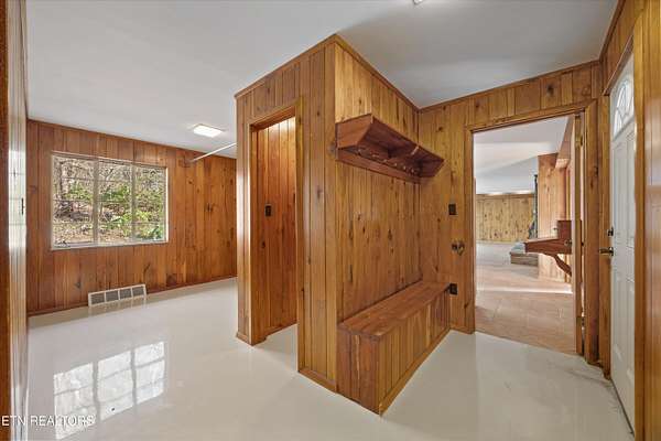 Tucked away on 15 private acres, this remarkable Harriman property tells a story the moment you arrive. Built in 1967 with wood harvested directly from the land, 683 Webster Rd is more than a home, it is a piece of family history that has been lovingly held by the same family since it was built. With over 4,100 square feet, 4 bedrooms, and 3 bathrooms, every inch of this home is filled with warmth, craftsmanship, and unforgettable character. Step inside to find slate rock in the foyer, hardwood floors across the main level, and a rich blend of natural materials that make this home truly one of a kind. Red oak walls bring warmth to the main level, white oak adds charm upstairs, and the basement features beautiful ambrosia maple that gives the space its own distinct feel. Two stone wood-burning fireplaces create cozy gathering spots, while the vintage 1960s oven and stove, still in working condition, add a nostalgic touch that is hard not to love. The main level offers a primary suite for everyday convenience, along with beautiful wood cabinetry and a spacious laundry room just off the kitchen complete with a utility sink and a large closet that would be perfect for a canning room, pantry overflow, or extra storage. Downstairs, the basement offers even more personality with a full bath, walk-in shower, tile flooring throughout, and a built-in bar that makes the space ideal for entertaining. Set in a peaceful country setting with a large two-car garage and room to breathe in every direction, this property offers privacy, history, and craftsmanship, all while being just 30 minutes from Knoxville and Oak Ridge. Homes like this do not come along often. This is the kind of place that feels special because it truly is.