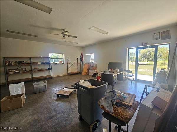 Everything HAS been cleared from warehouse. Updated photos coming soon! 2 buildings with 5,200 square feet total! AVAILABLE DECEMBER 2025! 1st building: 4,000 sq ft in total with 3 drive in bays (3,050 sq ft - warehouse/ 950 sq ft office space with kitchenette/ additional 950 sq ft - upstairs loft/storage) 2nd building: 1,200 sq ft - detached warehouse with 2 drive in bays Both buildings available for long term rent! Located off Buckingham Road in Fort Myers on 14 acres (owner's residence also on property with separate address). One full bathroom and one half bathroom. ZONED FOR AGRICULTURE 2. Maintenance and property taxes taken care of by owner. 3 phase electric. Water is on septic. Warehouse has it's own private front and rear entrances. Non-assigned parking on grass next to warehouse. Owner willing to negotiate if leaseholder only wanted to rent out the larger warehouse/office space/upstairs loft with 4,000 square feet. Leaseholder to pay utilities such as electric.