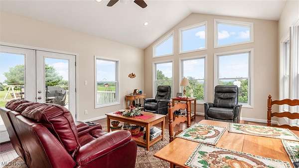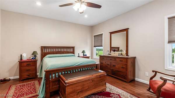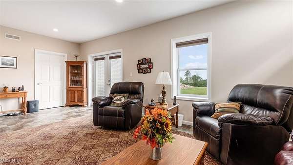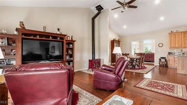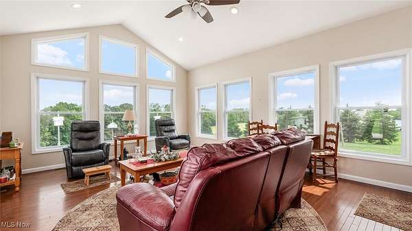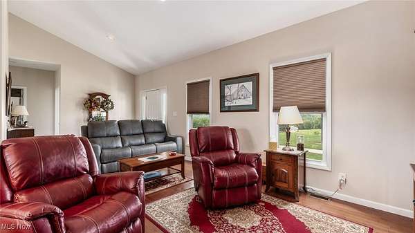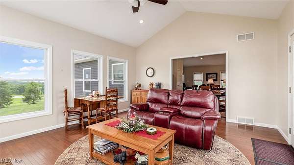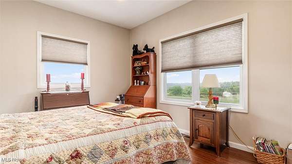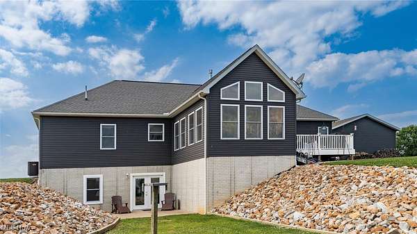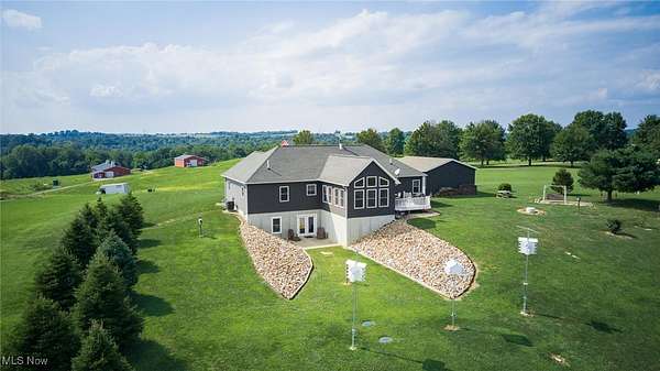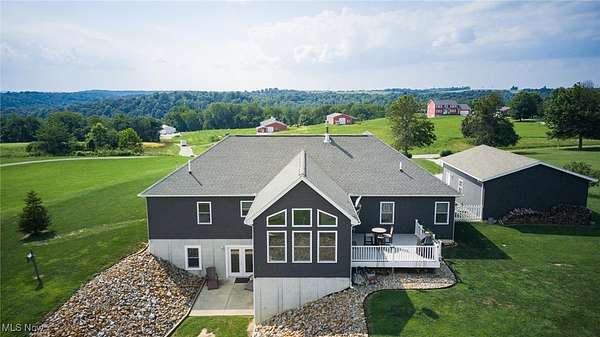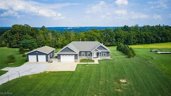 Built in 2018, this stunning 3-bedroom, 3 full-bath home offers panoramic views and sits on 5.72 beautifully landscaped acres. Inside, you'll find gleaming hardwood floors, a spacious sunroom filled with natural light, and an amazing master suite. The walkout basement features a finished family room and patio, perfect for entertaining or relaxing. Car enthusiasts will appreciate both the attached 2-car garage and additional 2-car detached garage. A rare find combining modern comfort with exceptional outdoor living.