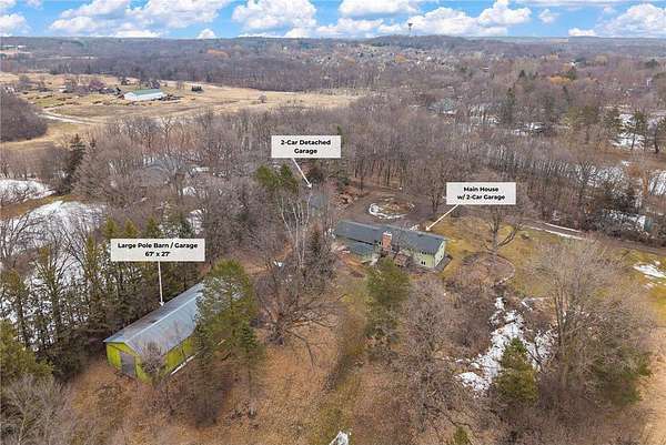 Enjoy privacy, space, and convenience on this beautiful 4.5-acre property located at the end of a quiet road. The setting offers a secluded feel while still providing quick access to HWY-55 and other major roads. The property includes a large 67'x27' pole barn with concrete floors, ideal for storing equipment, recreational vehicles, or workshop space. There is also an additional detached 2-car garage, plus a 2-car attached garage with floor drainage and the 30A/40A/60A circuits. The well maintained home is wrapped in durable metal siding with a natural stone accent wall. Recent updates include new carpet, new LVP flooring, fresh interior paint, new stainless steel appliances, and new windows throughout the home. The roof is less than three years old, and the home features a dual AC system for added comfort. A great opportunity for buyers looking for privacy, usable acreage, and convenient access to town and major roads. Schedule your showing today!