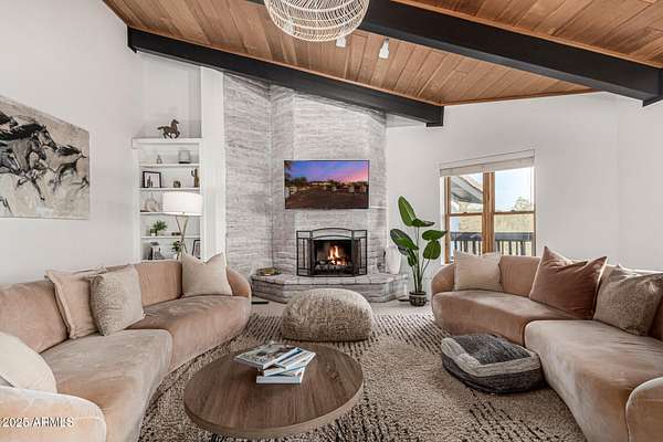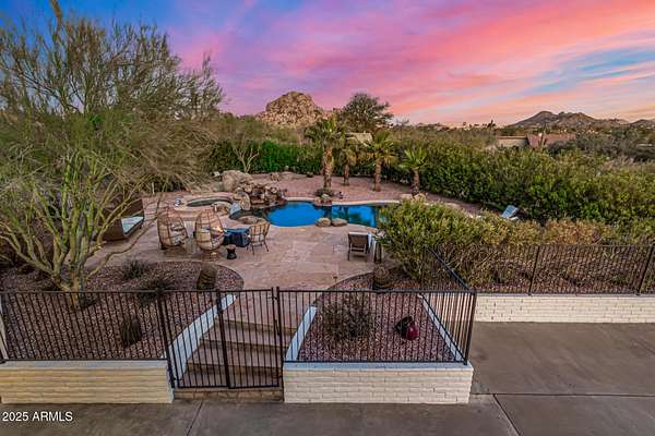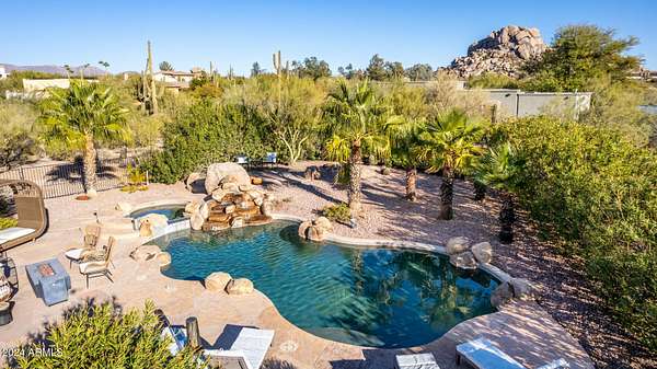 Wow! This outstanding masterpiece on a 1.59-acre lot is a true dream! A 3-car garage, circular driveway, and mature landscaping are just the beginning. Be awed by the sleek and modern touches this beauty showcases! Stylish light fixtures, vaulted ceilings with exposed beams, a blend of wood-look and tile flooring, and a lovely bay window in the circular dining room are just a few of the highlights. The large living room, complete with a dry bar and a delightful fireplace, promises to make every gathering unforgettable. The gourmet kitchen boasts abundant cabinetry, granite counters, stainless steel appliances, a tile backsplash, a butcher block island, and a cozy breakfast nook. The grand owner's ensuite retreat features plush carpet, high ceilings, and direct outdoor access to a large deck with stunning mountain views. Downstairs, discover an entertainer's paradise in the basement, which includes a spacious family room with a wood-burning fireplace and a bonus room that can be converted into a game room or exercise room. Step outside to a private backyard oasis featuring a covered patio, mature shade trees, and a refreshing pool and spa with a rock waterfall. Enjoy breathtaking mountain and sunset vistas from the relaxing deck. This home is tastefully furnished and available as part of the sale! Plus, with plenty of room on the lot for an ADU, RV/Car Collector Garage, or Workshop, this one-of-a-kind property is truly a rare find. Carefree, AZ, and the surrounding Cave Creek and North Scottsdale areas are highly sought-after locations for buyers and investors looking to experience the Arizona lifestyle. With premier golf resorts, top-tier restaurants, and nearby access to endless miles of high-desert trails for horseback riding and off-road adventures, this area offers unparalleled charm. Located in the heart of Carefree, this expansive estate is in close proximity to the world-class Boulders Resort and Golf Course, as well as Rancho Manana in nearby Cave Creek. With its resort-like pool and spa backyard oasis, this property presents an incredible opportunity for buyers seeking to relocate or purchase a second home in one of North America's top warm-weather destinationsCarefree, Arizona.