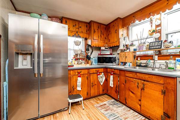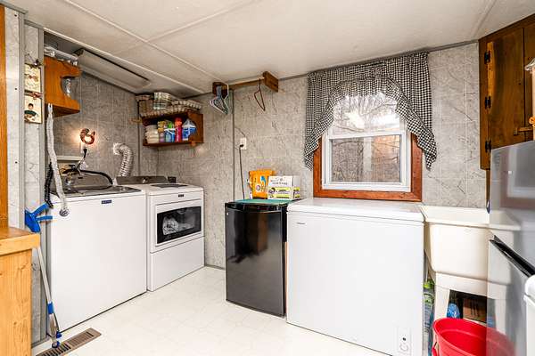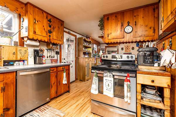 Inside, you’ll love the warm pine kitchen cabinets, updated vinyl wood flooring (3 years old), and appliances including a dishwasher (3 years old), refrigerator (one year old), oven, stove, deep freezer, and washer/dryer (approx. 4 years old). The primary bathroom features a walk-in shower and was beautifully redone.