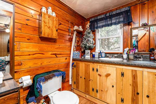 Welcome to your own private slice of country paradise! This adorable rustic cabin-style home is full of charm and perfectly nestled on 2.04 peaceful acres with a breathtaking, serene backyard and a fully stocked pond.