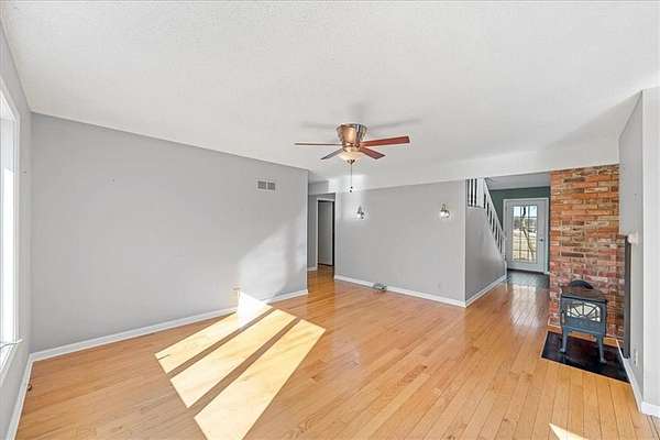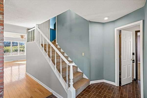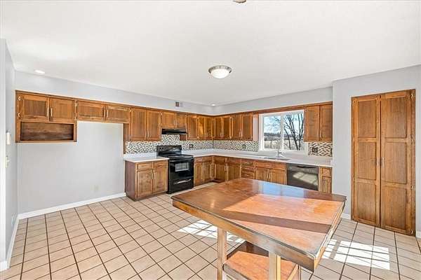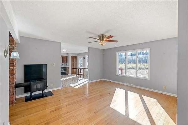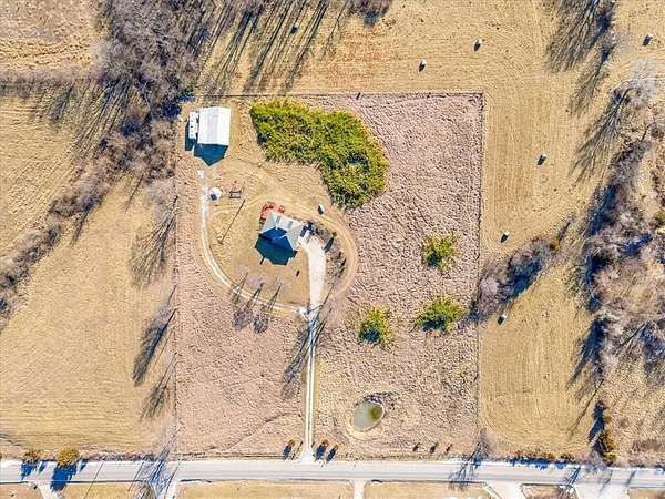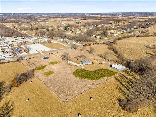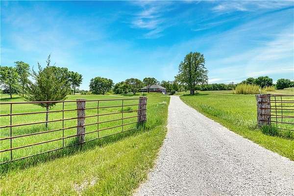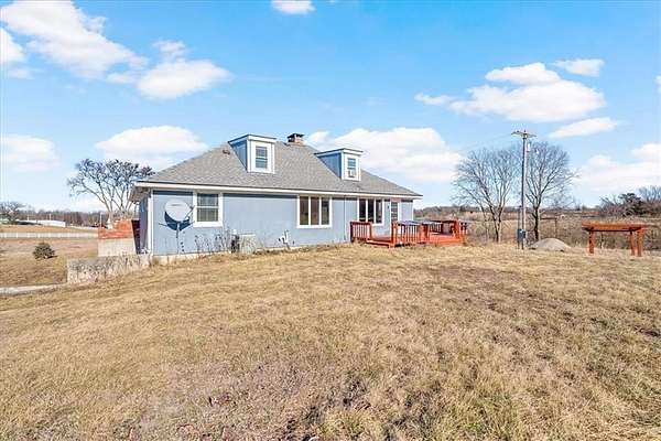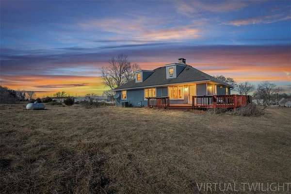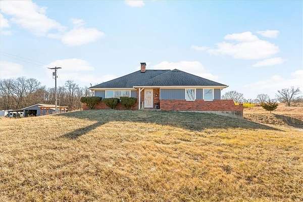 Wake up to quiet mornings, open skies, and views that stretch in every direction. Set on 4.71 serene acres, this ranch-style home is a rare blend of warmth, light, and breathing room. Sunlight fills the open, easy-flow floorplan, while a massive wood-burning fireplace becomes the soul of the home-perfect for slow evenings and gathered conversations. The oversized eat-in kitchen invites connection, featuring granite countertops, generous space to cook and linger, and windows that frame the surrounding landscape. Step outside or simply look out-every angle offers calm, privacy, and a sense of escape. The walkout basement holds exciting potential for additional finished living space and includes a storm shelter and food pantry, along with a stair lift on track for added accessibility. A small barn and wide-open acreage invite hobbies, animals, or simply the freedom to roam. With very little updating needed, this is a place to settle in, exhale and make your own.