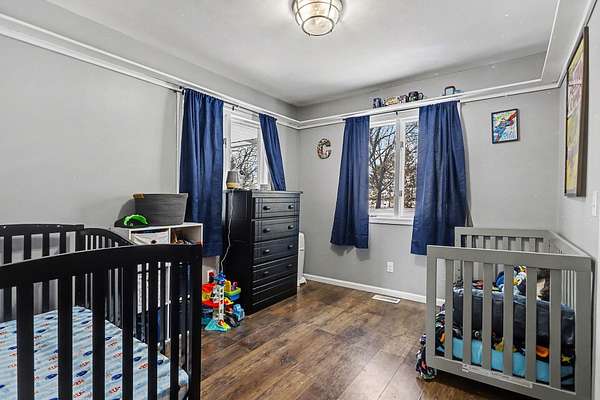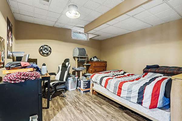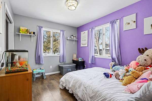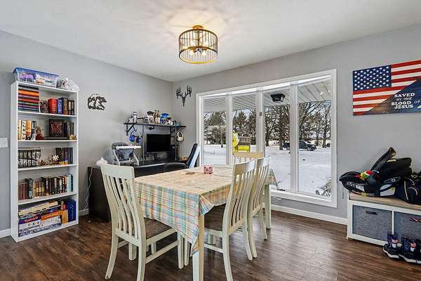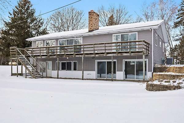 Spacious walk-out ranch with open main-floor concept. Kitchen features oak cabinets, laminate flooring, ample counter space, and large center island with sink, dishwasher, and eating area. Living room offers wood-burning fireplace and sliders to 54x8 rear deck. Primary bedroom includes full bath, generous closets, and deck access. Finished walk-out lower level features 20x34 rec room with pool table area, 19' wet bar, and half bath. Family room with second fireplace, plus full bath with stand-up shower and whirlpool tub. Fourth bedroom on lower level. Service door and sliders lead to rear patio. Very private backyard with heated 24x16 outbuilding with loft-ideal playhouse or hobby space. Finished 27x35 garage is insulated and drywalled. Klinger Lake access just 1/4 mile away.