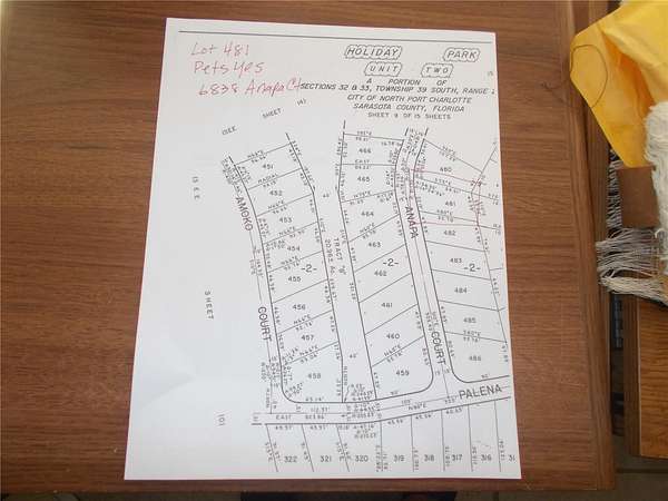 Est $120/moVACANT LAND in the sought after Gated Community of Holiday Park and in the Pet Section. The land is located on Anapa Court and is 4677 square feet. In Holiday Park you own the land with a deed and the maintenance fee $2340.00 a year ($195 a month) is included in your taxes. Holiday Park offer many amenities including 2 Pools, Tennis Courts, Pickle Ball, Bocci, Shuffleboard, Laundry Library, Horseshoes, Bingo plus other card games, Fitness Room and so much more. This is a perfect place for your new manufactured home. Come and see!