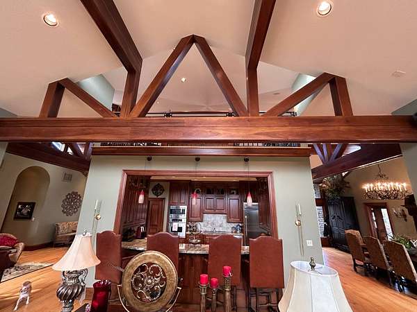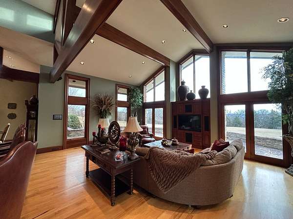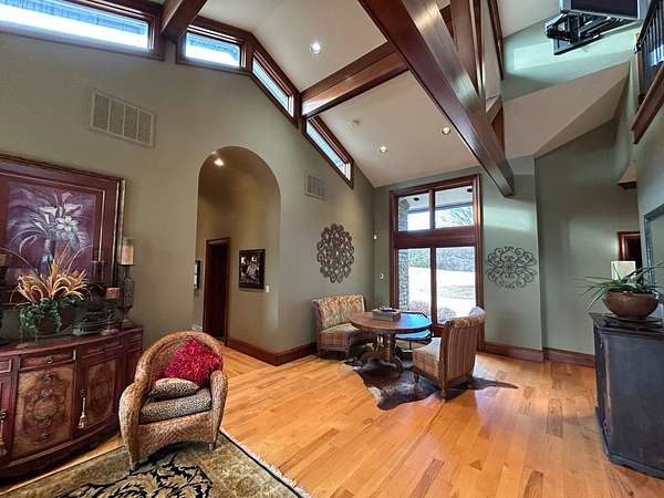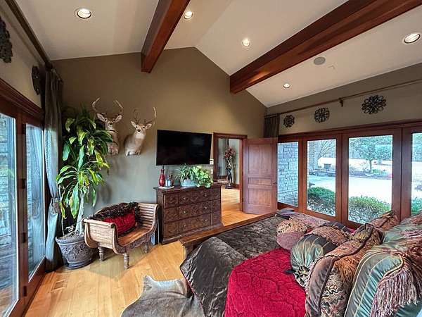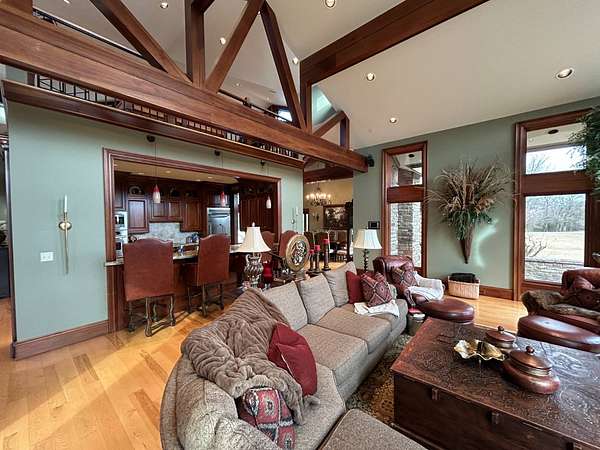 Custom built by Lee Jackson for Lee Jackson himself, this exceptional estate at 6839 Highway 64 showcases quality craftsmanship and thoughtful design throughout. The 3,277 sq ft main home offers 3 bedrooms and 3 bathrooms and sits on 38 scenic acres with a large pond, a huge manicured lawn, and approximately 70% wooded land, bordered by paved roads on both the north and south. Inside, the home features beautiful hickory wood floors, stained poplar trim and doors, solid 13/4-inch doors throughout, granite countertops with a granite sink, and stainless steel appliances, including a cooktop with downdraft, icemaker, dishwasher, and dryer that are only two years old. Comfort and efficiency are enhanced by an 11-ton geothermal heating and air system, central vacuum, alarm and sound systems, crawl space with a commercial-grade dehumidifier, and a full sprinkler system serving the yard and flower beds. Outdoor living is impressive with a 1,274 sq ft rock back deck, a 648 sq ft covered front carport with A/V wiring, an asphalt drive, and expansive views overlooking the pond and grounds. The property also includes a separate 40x60 fully insulated shop with full heat and air via a 5-ton unit, complete living quarters with a full kitchen and bathroom, a 60-foot concrete covered lean-to, and its own in-ground sprinkler system. Included with the property, adjoining the property, is a second home at 6801 Hickory Ridge Road in Mulberry, AR, offering 992 sq ft on 15 acres, remodeled in 2010, with 2 bedrooms, 1 bathroom, gas heat, stainless steel appliances, granite counters, a 2-car carport, sunroom, fenced backyard, amazing views, and a she-shed with a half bath and cellar-creating a rare, multi-residence opportunity ideal for extended family, guests, or income potential. The seller will consider selling main residence and 38 acres alone.