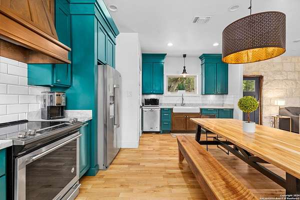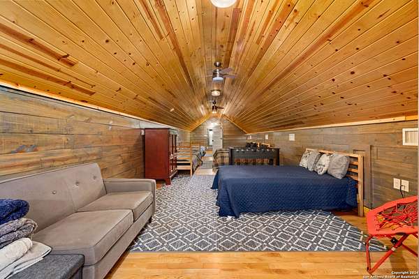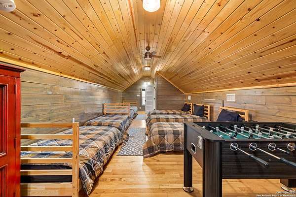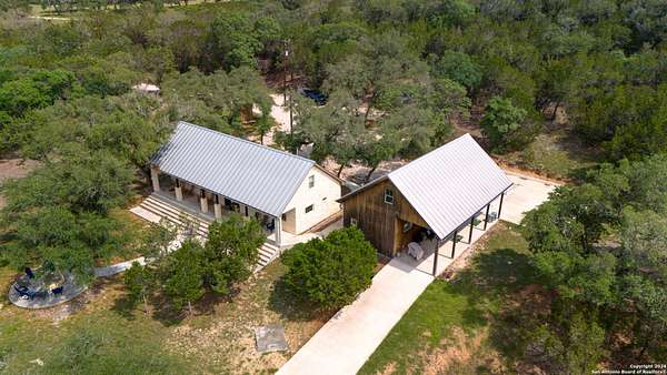 Nestled across the road from the iconic Garner State Park, this remarkable property boasts 11.2 acres of scenic beauty. Built in 2017, the impeccably crafted main residence comes *FULLY FURNISHED* and equipped as a profitable STR offering 4 bedrooms, 2 full baths, and 2 half baths, ensuring ample space for comfortable living. Just minutes from the free-flowing Frio River and a short 2 1/2-mile drive to Garner State Park's main entrance, this location promises endless outdoor adventures. Crafted with meticulous attention to detail, the main home features a striking 100% stone exterior, while the garage building showcases a charming 100% cedar exterior. Both structures boast 2 x 6 walls, spray foam insulation in the ceilings, and 24-gauge standing seam metal roofs, ensuring durability and energy efficiency. Inside, the home exudes elegance with solid red oak flooring throughout and tile flooring in the bathrooms. High-end faucets adorn all sinks and showers, while solid marble countertops grace the bathrooms and kitchen. The kitchen is equipped with stainless steel appliances and custom-built cabinets crafted from solid wood. Accommodating gatherings of any size, the residence comfortably sleeps 17 with 5 queen beds and 7 twin beds, all featuring new mattresses. For added convenience, an oversized stainless-steel water heater and water softener are installed. Unwind after a day of exploration with the outdoor shower, or retreat to the workout room above the garage for a rejuvenating exercise session. An additional sleeping area offers flexibility for guests or family members. Water is abundant with a well reported at 100 gallons per minute, drawing from an 890- foot deep well into the Trinity Aquifer. Covered parking is provided under the 12 x 40 carport, ideal for RVs or trailers. This home is a true gem!