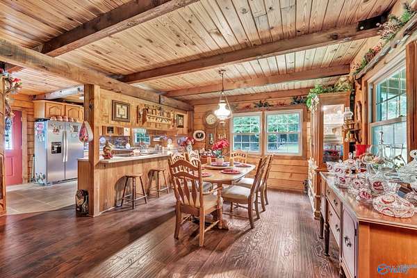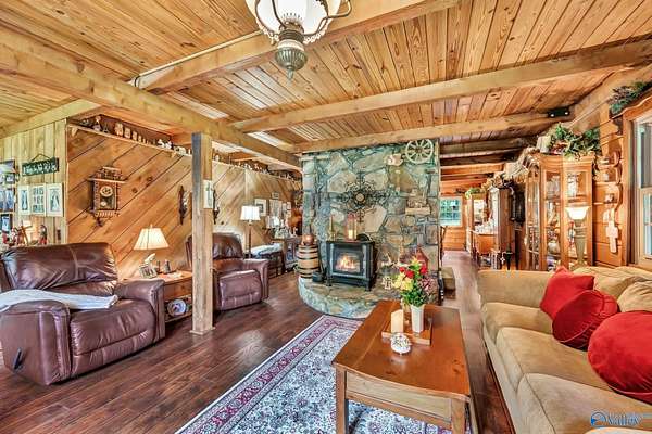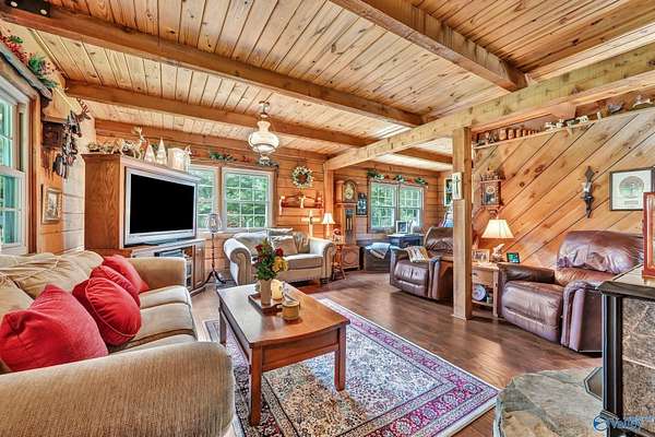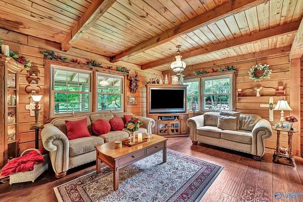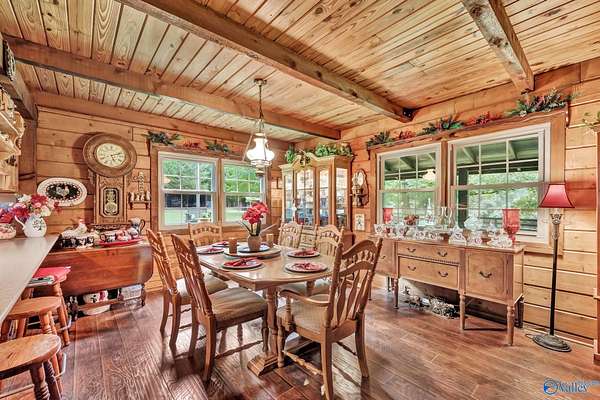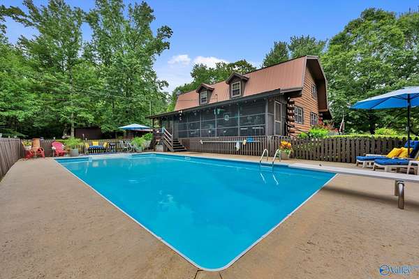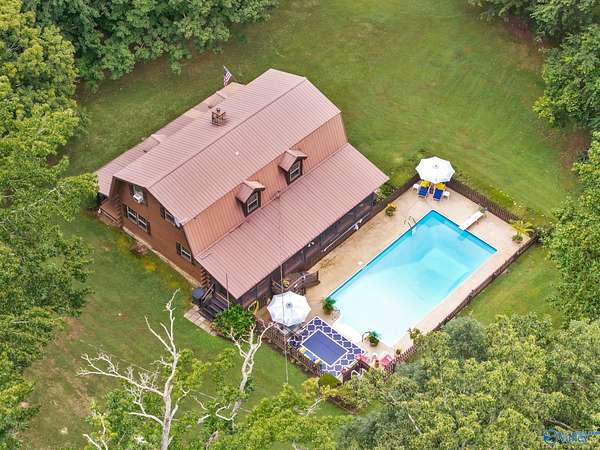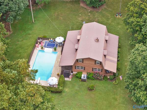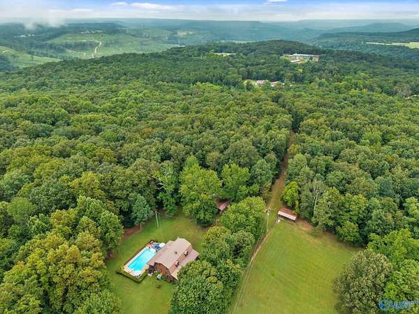 Escape to the country with this beautiful one of a kind 3-bedroom, 2.5-bath log house homestead situated on 30 acres of rolling land on a secluded mountain top. Enjoy the peace and privacy of your own retreat, complete with horse pasture, abundant wildlife, and mature trees. Inside, the home offers spacious living areas, wood-beamed ceilings, and rustic charm throughout. Step outside to relax by the pool, entertain on the large covered porches, or explore your land on horseback or ATV. This property is perfect for all outdoor lovers craving for space to roam-all within reach of modern comforts. This homestead is easy commuting distance to Huntsville, Decatur, and Birmingham.
