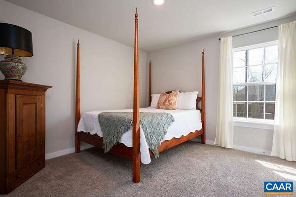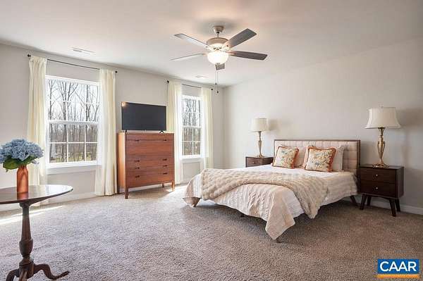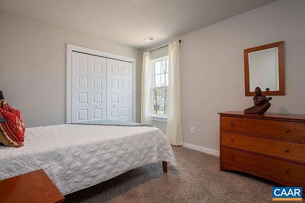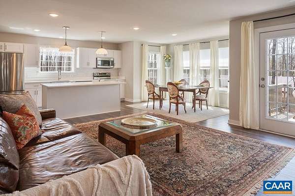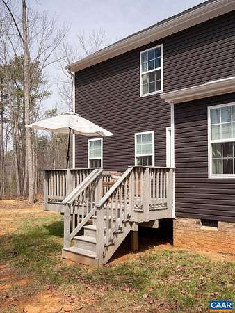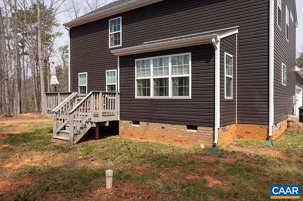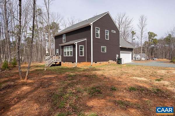 Built in 2023 and set on 1.5 acres, this nearly new home offers the benefits of modern construction with space to spread out. The large, level yard provides flexibility for outdoor living, recreation, or future plans, with a casual gathering area already in place for evenings outdoors. Inside, engineered wood floors run throughout the main level, anchoring an open floor plan that allows for flexible furniture placement. The kitchen centers around a substantial island with room for stools, highlighted by vintage French pendant lighting, painted white cabinetry, custom tile backsplash, stainless appliances including a French door refrigerator, and a large walk-in pantry. A bright dining area sits adjacent to French doors leading to the rear deck, creating an easy flow for outdoor dining and entertaining. A side-loading two-car garage opens to a practical landing area with a large closet for everyday storage. Upstairs, all four bedrooms are generously sized, including a spacious primary suite with walk-in closet and double vanities. The laundry room is located on the bedroom level, and pull-down attic storage adds convenience. Firefly fiber internet available, with easy access to I-64 and approximately 20 minutes to Charlottesville.