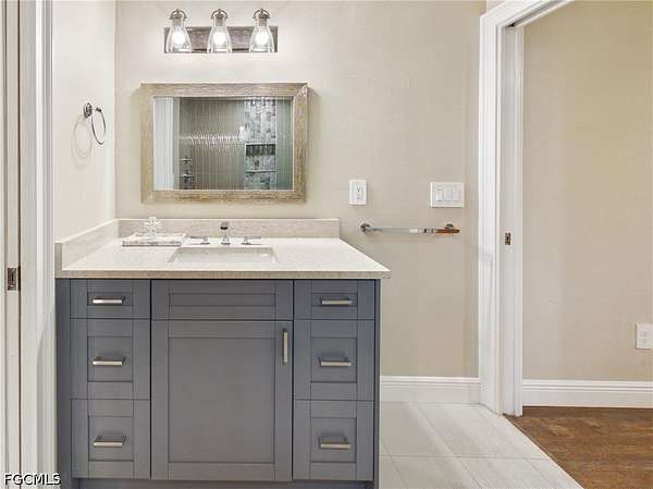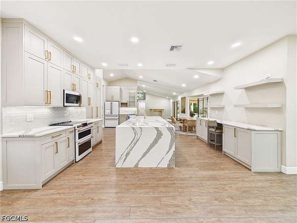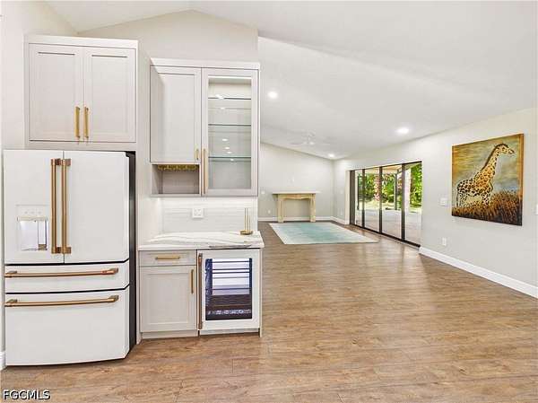 2.7 Acres! Tucked away in an ideal South Fort Myers location on a beautifully secluded lot (Ag-2 Zoning), this home offers luxury along with the rare feeling of privacy without sacrificing convenience. Just minutes from shopping, dining, and everyday essentials, you'll love coming home to a space that feels like your own quiet retreat. Step inside through the iron double doors and you're immediately welcomed by an open, airy layout with vaulted ceilings and natural light pouring through elegant plantation shutters. The flow of the home feels effortless-perfect for both relaxed evenings and entertaining guests. At the heart of it all is a stunning kitchen designed to impress. Quartz waterfall countertops create a sleek, modern focal point, complemented by custom soft-close cabinetry and a full suite of high-end appliances, including a wine cooler that's ready for your next gathering. Whether you're hosting friends or enjoying a quiet night in, this space was made to be lived in. The primary suite is a true escape, featuring a tray ceiling that adds depth and character, along with a spacious walk-in closet complete with custom cabinetry to keep everything beautifully organized. The en-suite bath continues the elevated feel with quartz countertops and a clean, modern finish that makes everyday routines feel just a little more luxurious. Even the garage has been thoughtfully upgraded, offering an air-conditioned space with durable epoxy floors-ideal for a home gym, workshop, or simply keeping things comfortable year-round. Blending style, comfort, and a peaceful setting, this home delivers the kind of lifestyle that's hard to find-private, polished, and perfectly connected to everything you need.