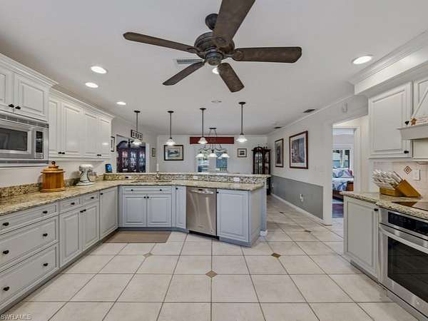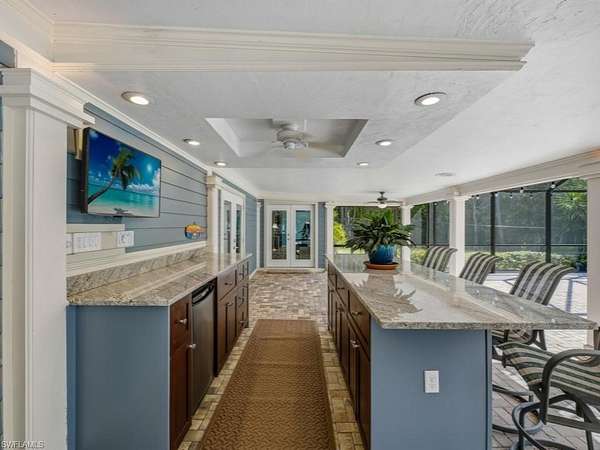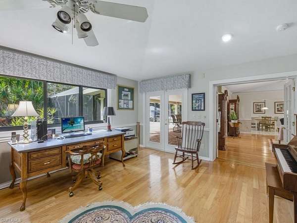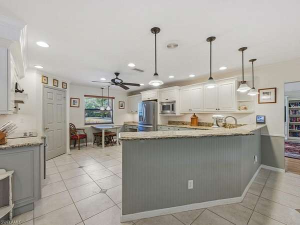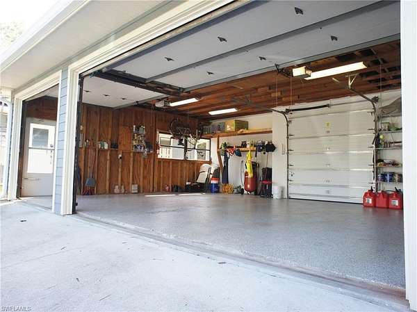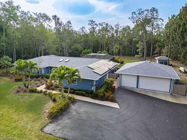 Experience the rare freedom of estate living in the heart of Naples with NO HOA!. Set on 2.73 acres in prestigious Livingston Woods, this beautifully maintained residence offers the privacy, space, and craftsmanship discerning buyers seek. A long, graceful drive leads to a home where every improvement has been made, giving you peace of mind. Inside, sunlit living spaces flow effortlessly toward the outdoors, complemented by a remodeled chef's kitchen, 5 spacious bedrooms, and 4 full baths designed for comfort and elegance. A detached 3-car garage with a large workshop provides exceptional flexibility for collectors, creatives, or those needing additional storage. The house boasts a filtered reverse osmosis system and a 500-gallon reserve tank that also feeds the pool for cool clean water year-round. The whole house sound system is ideal for entertaining or enjoying the vibes from any room in the house. This estate has undergone a series of high-value enhancements rarely found in the Naples market: new roofs on the home, garage, and shed (2025), high-impact windows and sliders throughout (2023), new air-conditioning system (2023), new well pump (2023), Hardie Plank siding (2022), new hot water heater (2020), and solar panels (2023) for energy efficiency and long-term savings. Step outside to a private resort-style lanai that features a television, granite countertops, sparkling pool, custom water feature, and expansive covered area ideal for year-round entertaining. With abundant acreage, the property easily accommodates a future guest house, sports courts, equestrian pursuits, or simply the luxury of open space. All of this is located just minutes from Naples' top schools, the YMCA, world-class beaches, Mercato, and the best of coastal living. This is more than a home - it's a rare opportunity to own a fully enhanced estate in one of Naples' most sought-after neighborhoods.