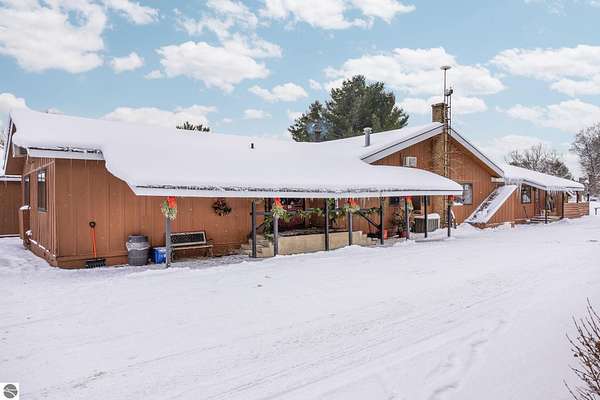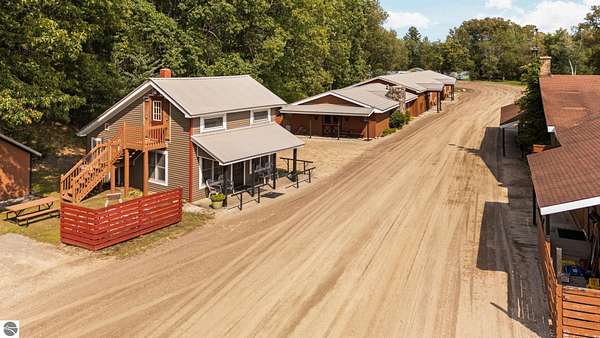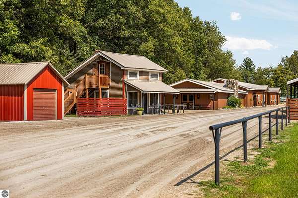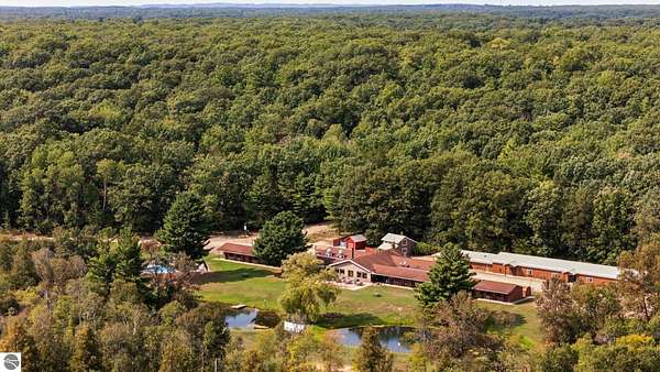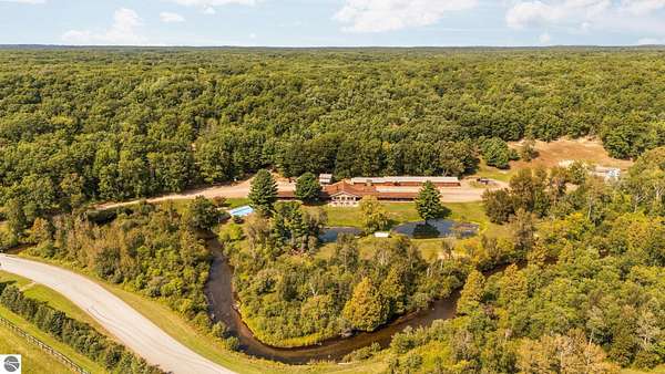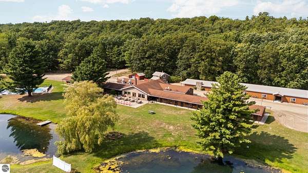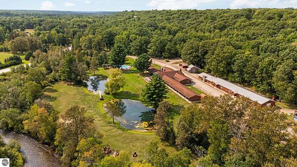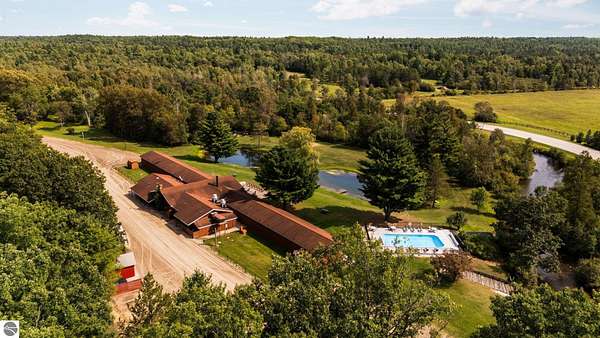 Ranch Rudolf. A Four-Season 40-Acre Resort in Traverse City, Michigan Nestled in the heart of the Boardman Valley, along the banks of the scenic Boardman River, Ranch Rudolf offers a rare opportunity to own a historic four-season, 40-acre resort in Traverse City. This unique property combines lodging, recreation, and event hosting, all surrounded by the natural beauty of the Pere Marquette State Forest. The resort features 15 motel units, a private house, and a full-service restaurant with seating for 147 guests complete with a liquor license. Additional facilities include a 55-person meeting room, pavilion/game room which holds 113 people, 25 campsites with restroom/shower buildings, a canoe, Kayak and inner tube livery, laundry room, garage, and linen storage building. Guests enjoy a wide variety of amenities underground heated swimming pool, two stocked trout ponds, and 1,300 feet of private frontage on the Boardman River. The property has become a well-known venue for weddings, conventions, company picnics, holiday parties, and family reunions, drawing both local and destination visitors. Seasonal attractions enhance its appeal with canoe and tube rentals in the summer and a winter snowmobiling haven with direct access to 100 miles of groomed trails in Grand Traverse County connecting with other groomed trail systems. Cross-country skiing is also nearby with access to Muncie Lake Pathways, the VASA Trail, North Country trail and Sand Lakes Quiet Area. With its combination of lodging, dining, recreation, and event space, Ranch Rudolf is a one-of-a-kind Northern Michigan resort destination with endless potential for future growth. This piece of Northern Michigan paradise 16 miles from downtown Traverse City.