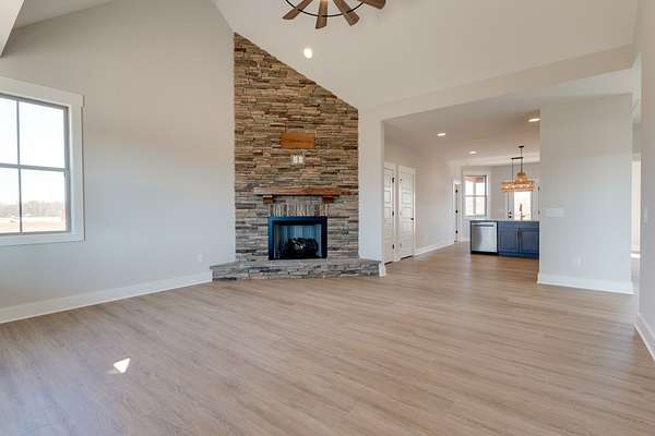 This beautiful new construction home sits on over three sprawling acres of Tennessee countryside! Open floor plan with vaulted ceilings and a gorgeous stacked stone fireplace in the living room. The kitchen boasts stainless appliances including a gas stove, refrigerator, undercabinet lighting, and backsplash. Laminate and quartz throughout with tile in both bathrooms and utility room. In the spacious primary suite you have a trey ceiling, double vanities, beautiful tile shower, and a walk in closet. Once outside there is a large covered deck to relax and enjoy the peaceful sounds of nature. No HOA! Lender credit of 1% and free appraisal when you use preferred lender Kevin Kenerson 615-390-7534 with Lending Hand Mortgage.