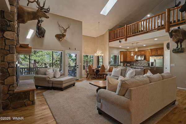 THIS AMAZING LOG HOME IS YOUR FOREVER DREAM HOME. This beautiful 2900 sq ft recently renovated/upgraded, including a 50 yr roof (with transferrable warranty), not only has beauty on the inside but also the outside. Home is placed nicely on 10 acres for utmost privacy and relaxation. Home lot partially borders Natl forest and offers beautiful mature Pines, oaks and more. Step inside to the beautiful rock fireplace and vaulted ceilings with skylights and great dual pane windows throughout. Large main floor master bedroom and bath offers luxury and easy access to the great covered deck, while the other side of the home offers 2 more ensuites for easy convenience and comfort for your guests. Upstairs has a large loft area great for additional sleeping area, a great office or gameroom, with a a private balcony and closet. Step outside on the large covered deck including a hot tub, or step down the stairs to the great paved area including propane firepit or follow the walkway to the other firepit area, while you gaze at the stars or watch the local wildlife saunter by. This is a must see.