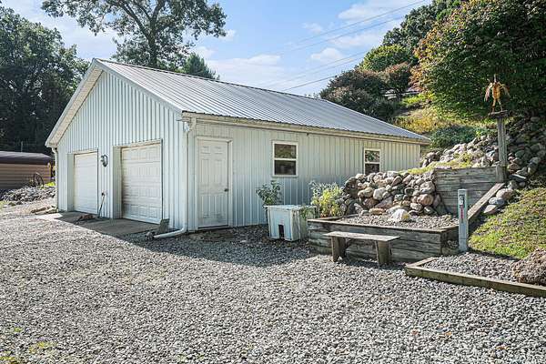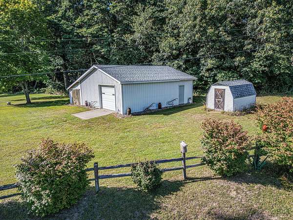 Escape to your own private retreat with this 4-bedroom home on nearly 5 acres of serene beauty. Towering pine trees, vibrant landscaping and a peaceful fishing lake with a private dock set the scene for relaxation. Inside you will love the sunroom, the open kitchen with breakfast bar and the charm of a home designed for both comfort and gathering. A spacious pole barn provides plenty of room for hobbies, storage, or workshop needs.