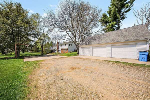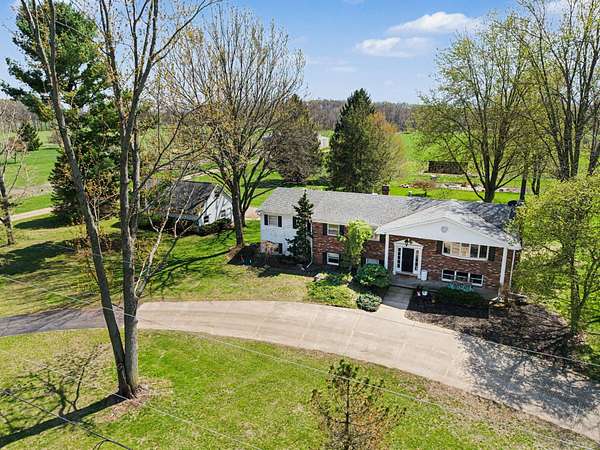 Set on over 23 acres of scenic countryside, this expansive bi-level home offers more than 3,700 sq ft of versatile living space and endless possibilities. The upper level welcomes you to a large living area, a beautifully appointed kitchen, a primary en-suite, 3 spacious bedrooms and 2nd full bath. The lower level is built for flexibility and function, offering a large family and recreation space, full bath/laundry area, dedicated workroom for hobbies, generous storage, and a private office with its own entrance--ideal for a home business or quiet workspace. Outdoors, the property truly shines with a mix of mature trees and tillable land, perfect for farming, recreation, or simply enjoying wide-open space. A massive outbuilding equipped with 400-amp electrical service and water adds incredible utility for equipment, workshops, or future projects. Whether you're looking to farm, work from home, or create your own private retreat, this property is ready to bring your vision to life.