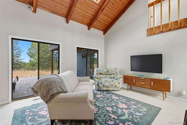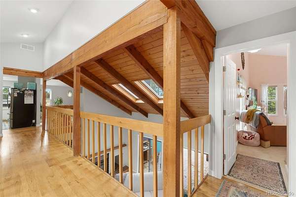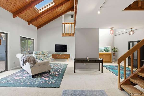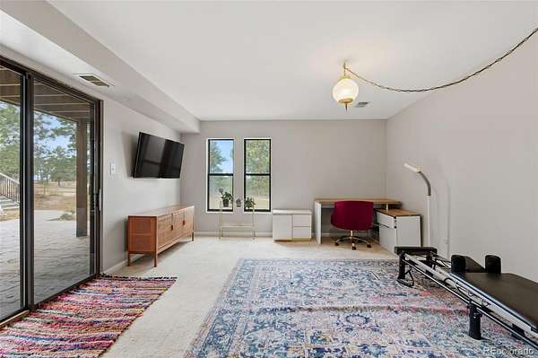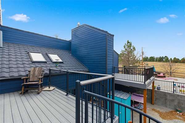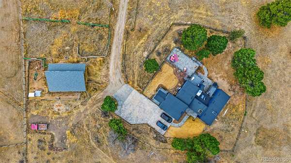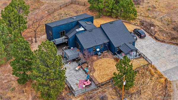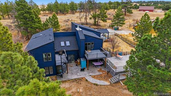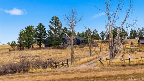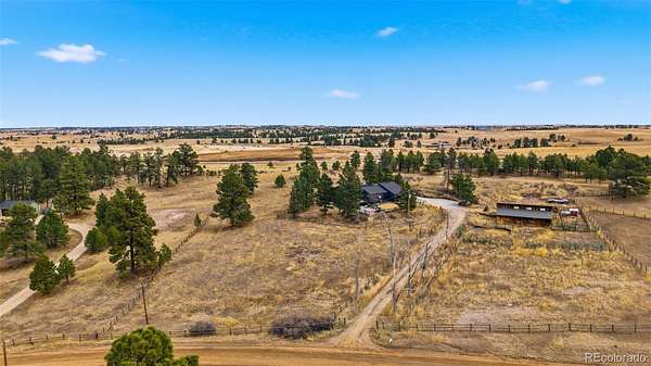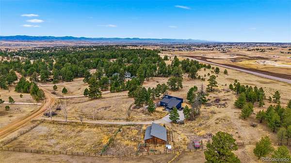 Homes like this rarely come available in one of Parker’s most sought-after equestrian communities. Situated on 5 fully fenced acres with hilltop mountain views to the west and city lights to the east, this exceptional property offers the best of Colorado country living. Major infrastructure improvements have already been completed, making this a rare turn-key equestrian property ready for immediate enjoyment and years of worry-free ownership. The home features 5 bedrooms and 3 bathrooms with an open and light-filled layout highlighted by two-story vaulted ceilings, skylights, and expansive windows. A living room addition (2019), granite countertops, exposed rustic wood ceilings, beams, and stairs, and a natural gas fireplace, create a warm and inviting space. The updated primary suite includes a spiral staircase that leads to the backyard while the walkout lower level offers a Great Room with a sink and cabinetry, making it ideal for guests/entertaining/flexible living arrangements. Enjoy access to a community horse arena and approx 8 miles of riding trails. The barn includes water/electricity/loft storage/tack room. The property is zoned for livestock with fenced pasture areas and cross-fencing already in place and even a GPS invisible fence system (with collars) for the pups! Recent improvements and maintenance include new roof and gutters on the home and and barn, new Hardie siding with additional insulation, new furnace, new septic line, updated well components and electrical, septic pumped and inspected, interior freshly painted, windows professionally cleaned, new decks and patios, 15 zone sprinkler system upgrades, and a new huge stamped concrete parking pad. This property offers a rare combination of privacy, acreage, equestrian amenities, and thoughtful updates in one of Parker’s most desirable horse communities.