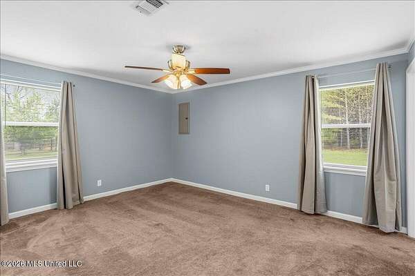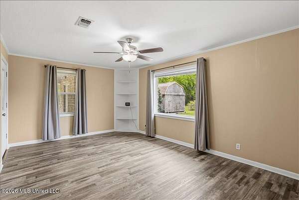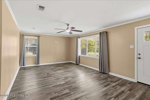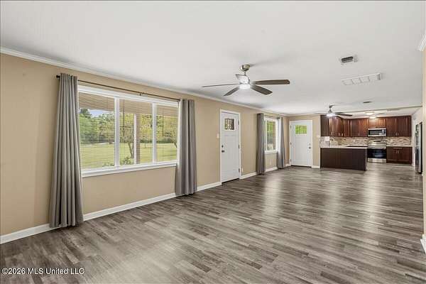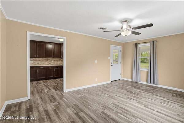 Beautifully updated 4 bedroom, 2 bath home situated on 3.09 acres, offering a perfect blend of modern upgrades and peaceful country living. The exterior has just been freshly painted, and the home features updated windows, electrical, plumbing, flooring, and interior doors. Inside, you will find an open concept living and dining area designed for both comfort and entertaining, along with an additional flex space ideal for a den or formal dining room. The kitchen is thoughtfully designed with quartz countertops, custom cabinetry, and quality finishes throughout. Crown molding flows seamlessly through the home, and the spacious primary suite showcases a custom tiled shower. A 52 inch wide hallway enhances accessibility and flow throughout the home. Additional upgrades include new attic insulation and a propane hot water system. Outside, the property is well equipped with a 20x20 metal building with lean to, an additional tool shed, and a septic system approximately 5 years old. The home is serviced by a private well and is currently connected to community water for added convenience. A 150 gallon exterior propane tank is in place. Enjoy the beauty of the land with established blueberry, muscadine, pear, and persimmon trees, creating a private and inviting outdoor setting.