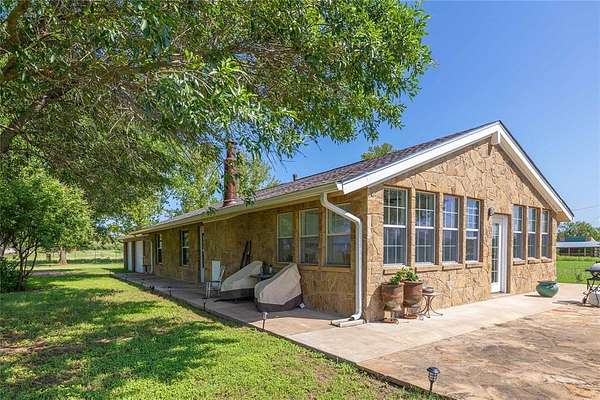 Enter the private gated entrance and reach the home about 150 yards off the county road. Home was built in 1986 on slab and has native stone exterior. Interior photos speak for themselves but note that the living room has a wood burning stove for extra heat and enjoyment. Off the kitchen is a door that leads to an enclosed sun porch. Porch has a window unit that heats and cools for year-round enjoyment of this area. Exiting porch, step out onto a large stone patio that has a grill, patio furniture and lots of pot plants.
