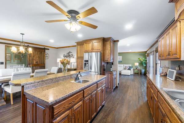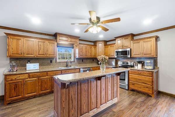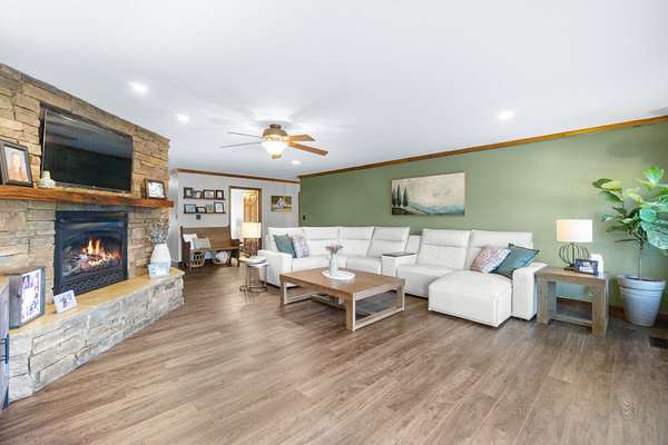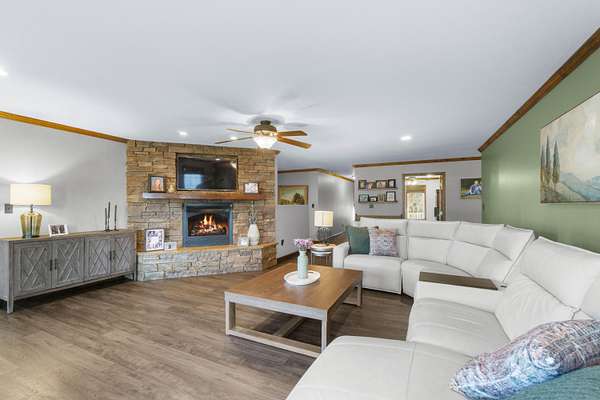Exquisite country estate home has 4 Bedrooms, 3 Bathrooms with 3629 total square feet of living space. Fantastic home for entertaining. Beautiful large rooms make entering the house, warm and inviting. The living room has a beautiful gas log fireplace and LVP flooring. The fantastic kitchen offers gorgeous, stainless-steel appliances, large island with vegetable sink, and beautiful handmade oak cabinets. The dining room is large enough for eight or nine people. There is also a very well-appointed pantry and laundry room for all your necessities and storage galore. The primary bedroom is very spacious has huge custom shelving, appointed walk-in closets, and one of the most beautiful tile showers and soaking tubs, plus double bowl vanities. All bedrooms are extremely large with great appointed walk-in closets. Downstairs is a family retreat over 20 x 30 living space for the family get togethers & game nights nice, beautiful built-ins for books and entertainment, another primary suite in the basement has great ensuite bath with nicely appointed walk-in closet. Don't forget the fantastic surround sound, theater room to watch all the new movies and ballgames in style. Plus, tons more storage in the basement with possibilities for a home office or workspace. Step outside to a total oasis with massive party deck, beautiful landscape lights, established trees, and party gazebo. A stunning L-shaped swimming pool custom-built with LED lights, easy entry pool, tanning lounge, splash pad, and large deep end. This house is the place everyone wants to be. So many extras to mention. Five car garage with 2 charging electric vehicle ports, concrete driveway, shake shingles siding, landscaping with beautiful curb appeal, great five-star schools in a close nit community just 30 minutes from Chattanooga, 15 minutes from shopping, two hours from Nashville, Atlanta and Knoxville. Centrally located this house is an easy house to call home.