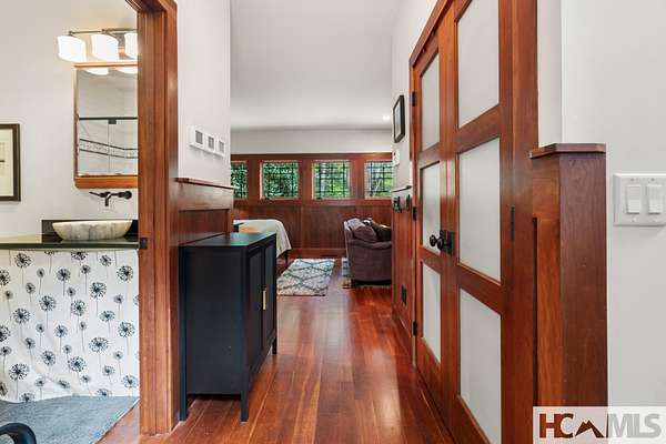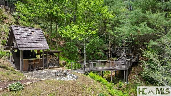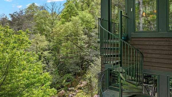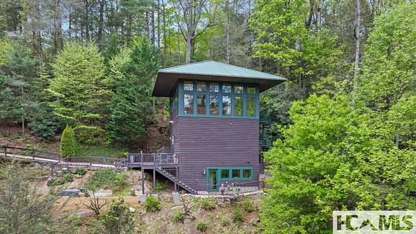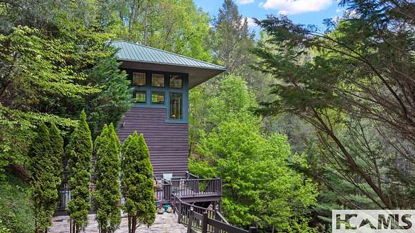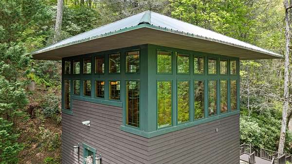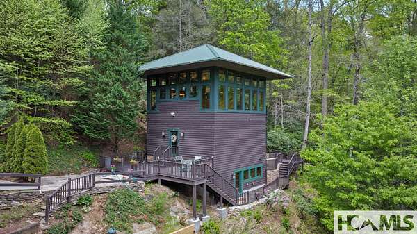 Welcome to "Secret Waters," a truly remarkable opportunity that promises to captivate and inspire. As you pass through the gates, you are welcomed by the magnificent tower house that stands proudly before you, accompanied by the soothing sound of cascading waters that invite exploration. This exceptional property features two incredible elements: an architecturally designed tower house with 2 bedrooms and 2 bathrooms, and a stunning natural wonder crafted by Mother Nature herself. At the heart of Secret Waters is a breathtaking waterfall that flows elegantly beside the home, creating a serene and picturesque backdrop. No detail has been overlooked in this luxurious venue, which showcases exquisite cherry millwork, sleek granite surfaces, and expansive glass walls that frame awe-inspiring views from the top floor. The enchanting grounds beckon visitors to meander across numerous bridges spanning the tranquil waters, including a swinging bridge and an exciting zip line, ensuring an unforgettable experience. Spanning 5 lush acres, this property offers plenty of space for additional accommodations, including a detached two-car garage. Inspired by Frank Lloyd Wright's design principles, this property lets you launch your luxury venture from day one. Don't let this extraordinary opportunity slip away. Your secret oasis awaits!