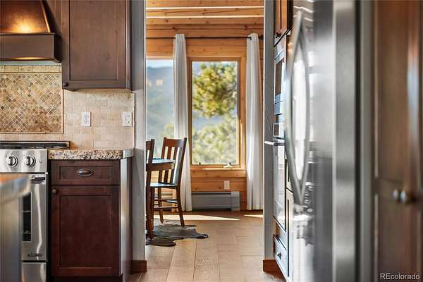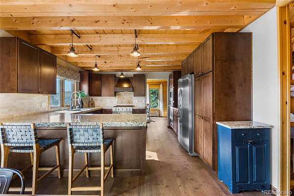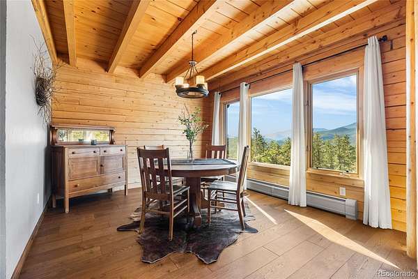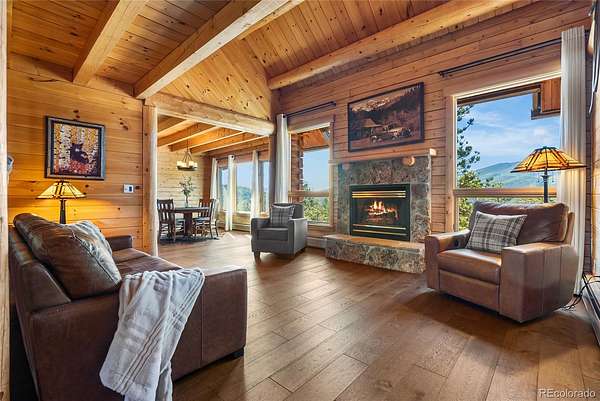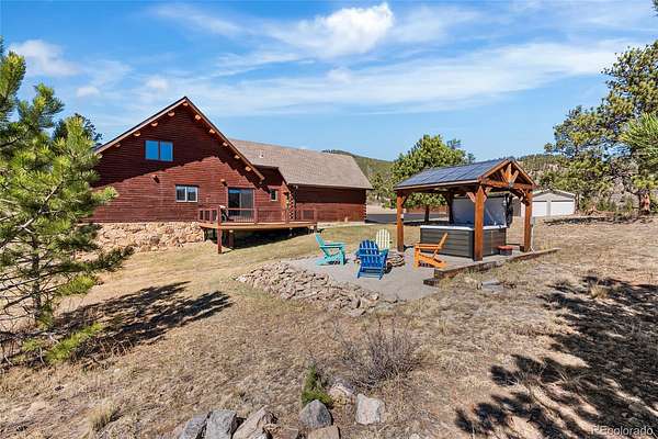 Mountain living at it's finest. Thoughtfully designed for both everyday living and entertaining, this home offers warm wood interiors, inviting living spaces, and windows that frame the surrounding natural landscape. The heart of the home is a custom eat-in kitchen which features high-end appliances, ample cabinetry, beautiful granite countertops and plenty of space to gather. Retreat to the recently renovated primary en-suite, where luxury meets tranquility. Enjoy dual his-and-hers sinks, a sleek glass-enclosed shower, and a spacious soaking tub for relaxing after a long day. The finished walk out basement expands your living space offering flexibility for a media room, guest quarters, home office or recreation area-seamlessly connecting indoor comfort with outdoor beauty. A standout feature is the detached heated workshop perfect for year round projects, hobbies, or additional garage storage. A second outbuilding offers endless possibilities for RV storage, equipment, recreational gear, or creative use. Whether you're seeking a full-time residence or a mountain getaway, this property delivers space, versatility and the Colorado lifestyle you've been dreaming of.