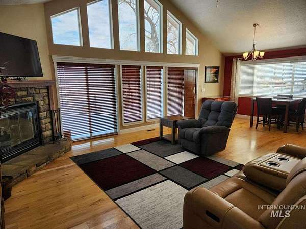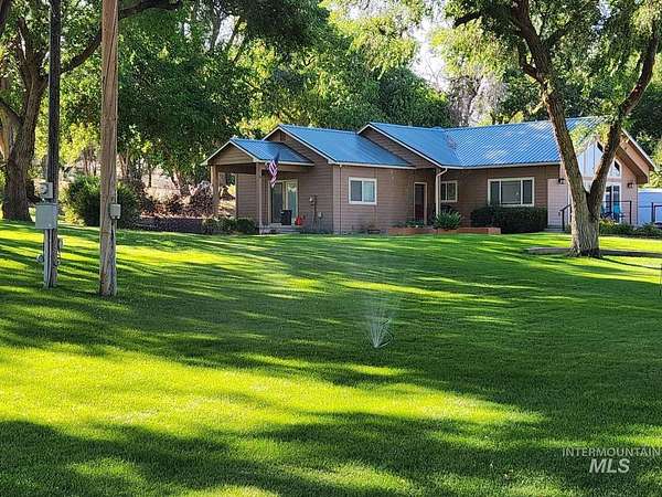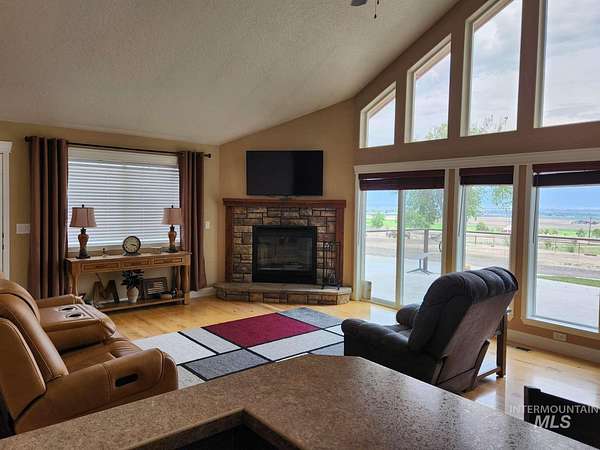 Come see this beautiful custom-built home on 4.8 acres with amazing views overlooking the valley and only 15 minutes to the freeway. This great country property is fenced with 2 acres of field grass w/5 acres of water rights so bring your animals. The living room has vaulted ceilings, hickory hardwood floors, and a stone fireplace. The kitchen has a breakfast bar with stainless steel appliances and is open to the dining area and family room. The large master bedroom suite has its own private covered patio. The master bathroom has a large 4'x5' tiled shower and dual vanities and a large walk-in closet. The rest of the home has 2 additional bedrooms/office. Bedroom #2 is 14'x12' and bedroom #3 is 12'x12'. A laundry room, 9ft ceilings, a large oversized 2 car garage, water softener and UV light whole house water filtration system and a 26'x45' concrete pad. Mature landscaping with park like trees and bushes, large garden shed, and wood fencing.