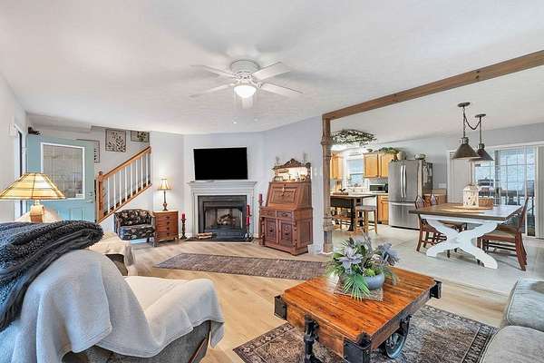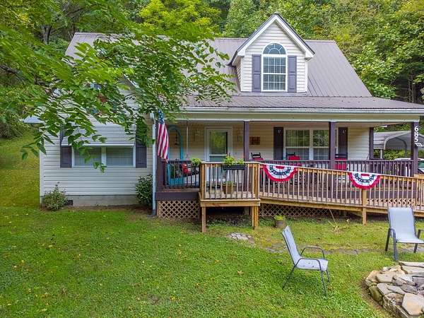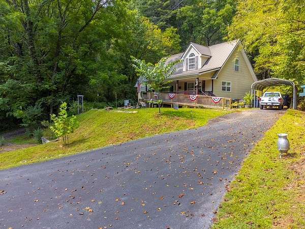Peaceful mountain living with space for projects! This charming 2BR/2BA + Bonus Room traditional-style home on 1.51 unrestricted acres offers versatility and comfort, with the soothing sound of Peeks Creek just across the road. Built with durable 2x6 modular construction, the home features LVP flooring in the living area, a cozy gas log fireplace, and an eat-in kitchen with attractive shaker-style cabinetry & plenty of storage. The layout provides a bedroom and full bath on each level, plus a spacious bonus room upstairs ideal for guests, office, or hobbies. Outdoors, enjoy a rolling landscaped yard, paved driveway off a state-maintained road, and plenty of usable space. Property highlights include a 30'x20' workshop with power, an RV site with electric and septic hookup and a small fenced area for pets. Relax on the covered back porch or front porch while taking in the peaceful setting. Home is equipped with a convenient ramp & the stairs have a powered chair lift. Bonus! This property has an assumable VA loan w/a great rate! A wonderful opportunity for those seeking flexibility, convenience, and mountain charm!