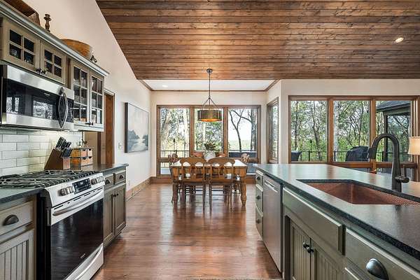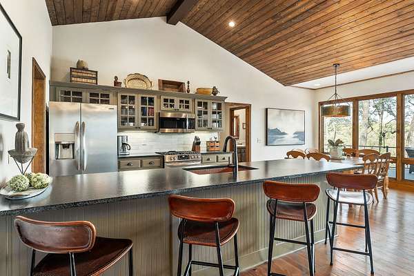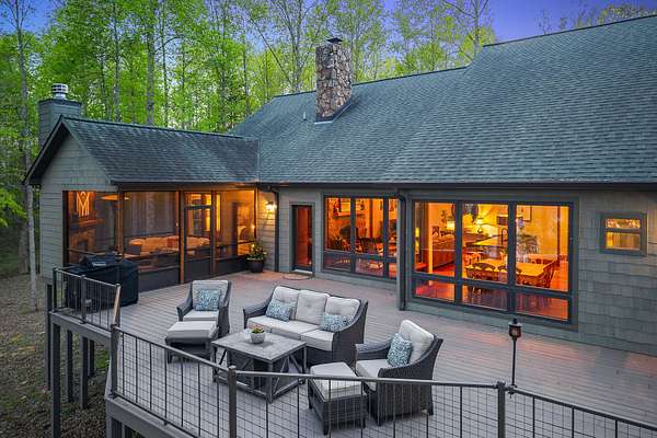The Ultimate Rustic Luxury Package at Center Hill Lake - Discover the pinnacle of rustic luxury living with this extraordinary custom-renovated retreat, privately nestled at the end of a quiet dead-end street on 5 treed acres overlooking the stunning waters of Center Hill Lake. This one-of-a-kind property blends elevated interior and exterior designs with the serene beauty of nature, offering an unmatched lake living experience. An expansive and thoughtfully designed floor plan caters to dual-family living, entertaining friends, and hosting extended family - or, a combination of all! Every detail has been crafted for comfort and elegance, from warm natural textures to high-end finishes. Multiple bedroom suites provide ample private space, while inviting social rooms and cozy family gathering areas create the perfect atmosphere for connection and relaxation. Enjoy the warmth of fireplaces both indoors and out, or step onto the extended outdoor living areas--both covered and open--for lake views and peaceful sounds of the surrounding woods. Whether sipping morning coffee with sunrise or enjoying sunset dinners, the tranquility here is unparalleled. Conveying furnished, this home offers a turn-key opportunity to experience Center Hill Lake in a way that is immeasurable--luxury, nature, and comfort all in one unforgettable package. This sale also includes a land parcel located in the Four Seasons development for convenient access to the nearby Four Seasons Marina and amenities - amenities include clubhouse, pool, tennis and pickle ball courts, playground, walking trails, and private marina--a perfect complement to this magical package! Notes: Home is conveying furnished (exclusions apply). Sellers utilize home as a functioning 5 bedroom home plus separate built-in sleeping quarters. Garage area is finished, heated/cooled, and currently serves as additional game/rec room. Home has been professionally measured.
