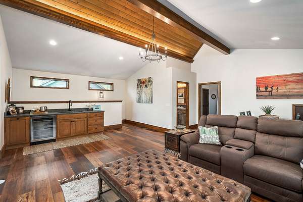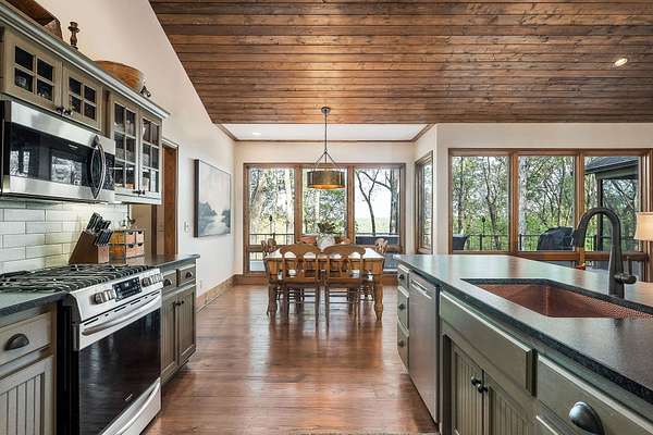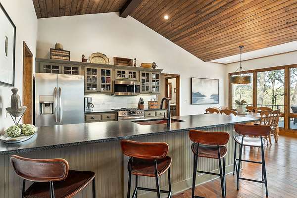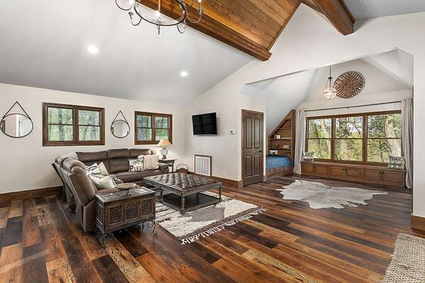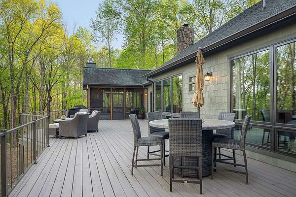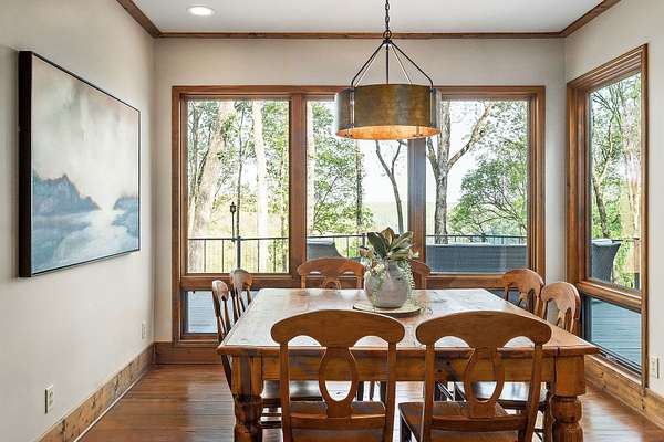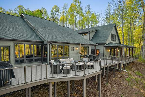 Experience the height of refined lake living in this exceptional turn key custom-renovated retreat, privately positioned at the end of a quiet dead-end street on five wooded acres overlooking the breathtaking waters of Center Hill Lake. Conveying fully furnished (exclusions apply) and thoughtfully designed to harmonize elevated interior and exterior finishes with natural beauty of its surroundings, this one-of-a-kind unrestricted property (STR allowed if desired) offers an unparalleled lifestyle of comfort, privacy, and tranquility. The expansive and versatile floor plan is ideal for dual-family living, hosting extended family, entertaining friends--or all three--while maintaining an intimate and welcoming atmosphere. Warm natural textures, curated high-end finishes, and meticulous craftsmanship are found throughout. Multiple private bedroom suites provide restful retreats, while inviting living spaces and cozy gathering areas create effortless flow for connection and relaxation. Enjoy the ambiance of fireplaces both indoors and out, or unwind on the generous outdoor living spaces--covered and open--where lake views and the peaceful sounds of the surrounding woods set the tone. From serene sunrise mornings to unforgettable sunset evenings, every moment here feels intentional and restorative. This home presents a rare opportunity to experience Center Hill Lake living at its finest--where luxury, nature, and comfort converge seamlessly. The sale also includes an additional land parcel within the Four Seasons development, providing convenient access to Four Seasons Marina and resort-style amenities including a clubhouse, pool, tennis and pickle ball courts, playground, walking trails, and a private marina--an exceptional complement to this already remarkable offering. Notes: Sellers currently utilize the property as a five-bedroom residence plus separate built-in sleeping quarters. The garage is finished, heated and cooled, and functions as an additional game/rec area.