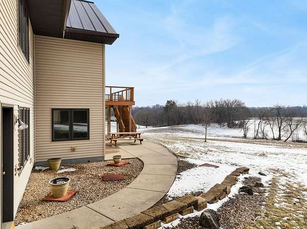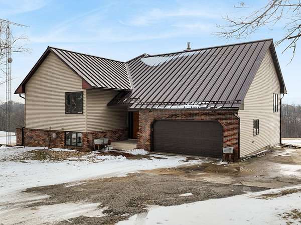 Exciting Offering in NE Iowa County, WI - Rural Home on Approx. 21 Acres! Views of the Existing Landscape, Southern Exposure. Tillable Acreage that is Gradual and Surrounded by Woods. Great Access to Hwy 151, with the Quiet Life of Dugway Rd. The Home Estimated at Approx 2700 SQ FT has been Maintained Very Well, with a nice Open Concept Kitchen, Living Room, and Breakfast Area. This Home has 3 BR, Much Storage, Completed Lower Level, Wood Burning Stove which accents a Room full of possibilities. There is Oak Cabinets, Quartz Counter Tops and Island. Knotty Pine Laminate Flooring, Some Carpet. The Home has a Two Car Attached Garage and a Barn Styled Outbuilding, Large Composite Deck, and Walk Out Lower-Level Patio. The Mechanical's are in Good Condition with Many Updates. Vinyl and Brick Exterior and Steel Roof with Eaves. Newer Windows, Some with Remote Control Blinds, and Doors Throughout. Well and Septic Good Shape, Maintained and Inspected. Internet Accessible.