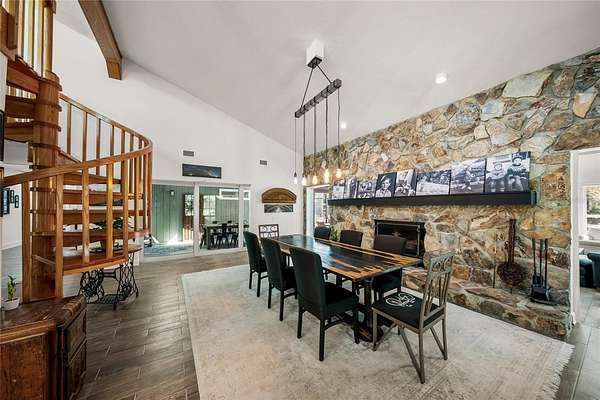 - Cathedral Ceiling(s), Ceiling Fans(s), Eat-In Kitchen, High Ceilings, Kitchen/Family Room Combo, Open Floorplan, Primary Bedroom Main Floor, Solid Surface Counters, Solid Wood Cabinets, Vaulted Ceiling(s), Walk-In Closet(s), Window Treatments