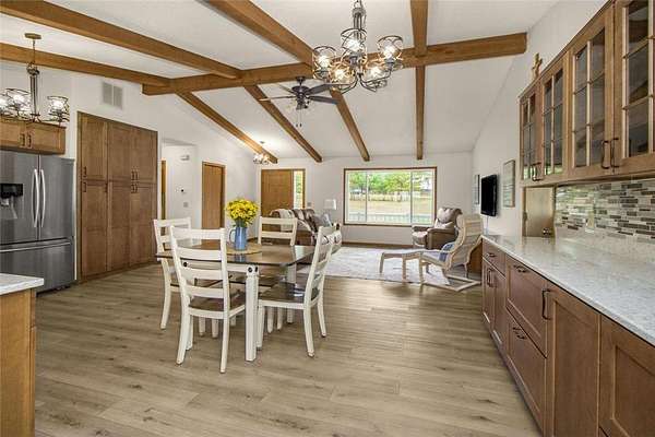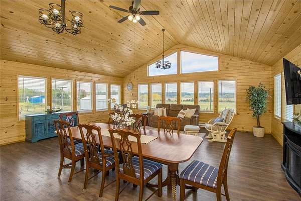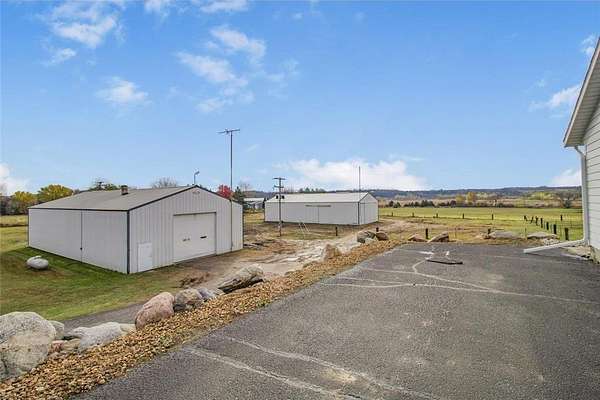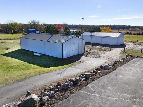 Fantastic equestrian/livestock farm or business/industrial opportunity to own 11.5 acres with 2-36x80 pole barns with 3 phase power. Home boasts of 4 bedroom, 2 bath with updated kitchen, new very large main level family room overlooking an expansive view of the pasture, lower level in-law suite with large living area and an underground garage currently used as a game room. Brand new furnace and water softener, updated kitchen 2020, new siding 2019, new deck/patio 2025, new LVP in main level, new carpet in bedrooms, heated garage, wonderful patio out back with fire pit, storage shed, and so much more. Separate driveway for sheds/pasture. City sewer line accessible. This home has an equestrian estate feel with a large pasture and room to roam. Sheds could also be used for supplemental income for storage. Whether you are looking for an equestrian farm, hobby farm, run an industrial business or a business with sheds, or just country life, this property is for you.