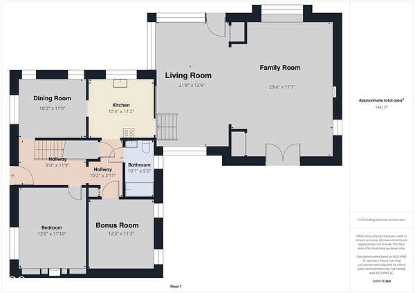 - Basement, Bathroom x 2, Bedroom x 3, Bonus Room, Dining Room, Family Room, Kitchen, Living Room