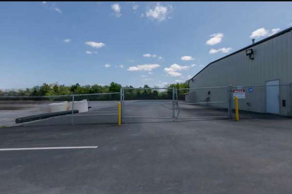 Situated on a heavy-duty asphalt lot, the property offers ample parking, fenced outdoor storage, and additional improvements including a barn and shed with power and water, plus a concrete pad for fuel or oil tank storage. The site is zoned CS and includes security/surveillance systems throughout.