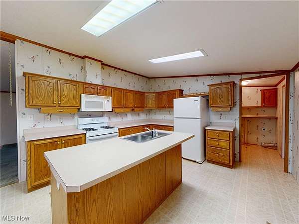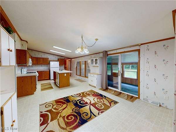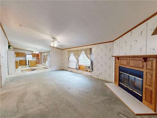 Excellent manufactured home now available in Andover, offering a fantastic opportunity for peaceful country living. This spacious ranch-style home features three bedrooms and two full bathrooms, providing comfortable living space. The interior boasts an open-concept kitchen that flows into a large family room complete with a cozy fireplace, perfect for gatherings. Exterior features include a detached two-car garage, a convenient carport, and an enclosed back porch, ideal for enjoying the serene surroundings. The property also comes with a shed for additional storage, and all existing appliances are included with the home. Perhaps one of the most appealing aspects of this property is its setting on over 17 acres of beautiful, wooded land. This expansive lot offers unparalleled privacy and a quiet, tranquil environment.
