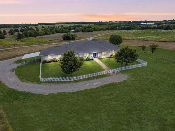 Est $3,849/moExclusive lender buydown incentive offered! Beautiful 4-bedroom 2.5 bath ranch style home on 11.7+ acres with rolling hills and stunning views. Ag exempt! Open up the white picket fence and step inside to find a spacious floor plan with storage galore! You will love the large bedrooms, along with the spacious living room that opens up into the kitchen. Outside, you will find a 2-car carport, a shed, and you'll love the fenced and cross-fenced acreage, ideal for livestock, horses. Located in Leonard ISD! Don't miss the chance to own your own slice of Texas!