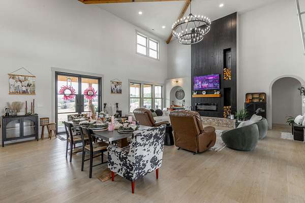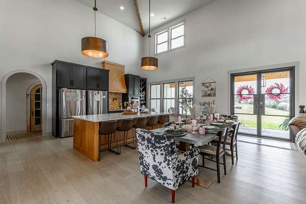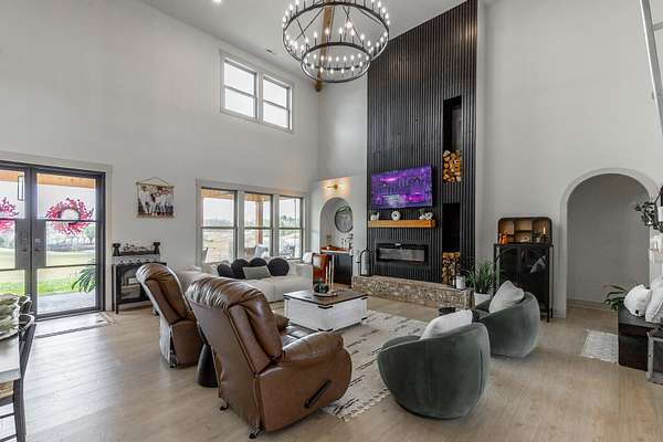This stunning and meticulously detailed custom-built home with 4 bedrooms, 3 1/2 baths sits on 3.64 acres of serene farmland and peaceful rural living, while still offering the convenience of nearby shopping, restaurants and more. The open-concept floor plan is intentionally designed for entertaining and taking in the views from every room. Inside, you'll find premium finishes, including custom flooring, brick, and tile accents, and beautiful fireplaces throughout. The state-of-the-art kitchen is a chef's dream, equipped with stainless steel appliances, including two refrigerators, two dishwashers, a wall oven, an ice machine, and a wine cooler. Raising the inside doors will make your heart sing when you feel the breeze from outside from multiple motorized screens from the beautiful entertainment area. The oversized primary suite includes a grand walk-in closet and a spa-like bath with a tiled shower, beautiful flooring, and a gorgeous soaking tub overlooking a fireplace to relax. Outdoor highlights include a large 18x36 saltwater pool with a diving board and a beautiful jacuzzi for your summer entertainment, and a covered multiple motorized screened-in back porch with a fireplace for year-round enjoyment, and an expansive entertaining space that is a must see. A welcoming front rocking chair porch provides a perfect spot for coffee and capturing sunset moments, all blending modern finishes with the beauty of natural surroundings of farms. You must see this one in person to truly appreciate the panoramic views, architectural detail, and lifestyle this property provides. It is like no other. Come today and let me help you call it HOME. Call for your private showing today.