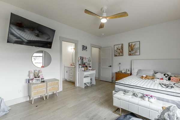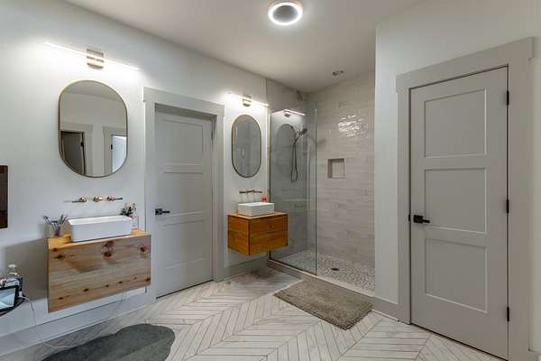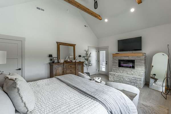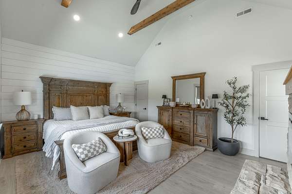 - Beamed Ceilings, Connected Shared Bathroom, Eat-In Kitchen, En Suite, High Ceilings, Kitchen Island, Open Floorplan, Pantry, Separate Dining Room, Separate Shower, Split Bedrooms, Tub/Shower Combo, Walk-In Closet(s)