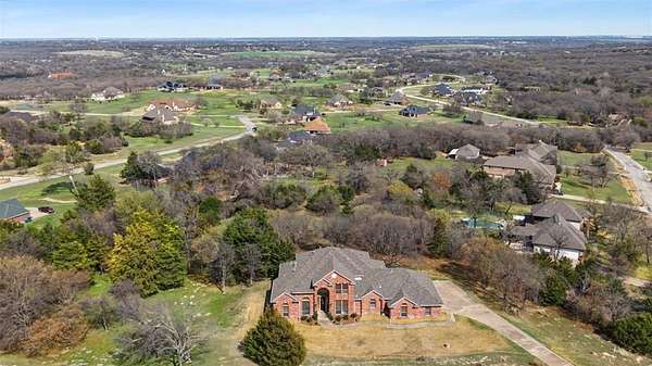 Custom Parker County home in gated community near Fort Worth offering refined country living and exceptional comfort. This one-owner, custom-built residence is surrounded by beautiful estate properties and peaceful Texas countryside, providing privacy while remaining conveniently close to Fort Worth. The spacious 4-bedroom floor plan features a highly desirable layout with the primary suite on the main level, along with a dedicated executive home office, formal dining room, and a bright breakfast nook that opens to the inviting living area. The chef-inspired kitchen includes 3cm granite countertops, extensive cabinetry, a large walk-in pantry, oversized island, and generous breakfast bar—perfect for entertaining or everyday living. Upstairs offers a large game room or second living space, ideal for a media room, lounge, or playroom. The oversized utility room includes a second pantry and space for an additional refrigerator or freezer, adding rare functionality. Major upgrades and systems include a Generac whole-home generator, water softener, reverse osmosis system, central vacuum, three HVAC units with updated ductwork, and two gas water heaters. The property also features a three-car garage and private well. Enjoy quiet country living with abundant trees and wildlife. The owners often report seeing deer while enjoying coffee on the back patio. A peaceful retreat just outside the city. Residents of this gated Parker County community enjoy HOA amenities including a community center, swimming pool, and tennis courts, adding to the lifestyle appeal of this exceptional property. This HOA is equine friendly. Property is less than 15 miles to Downtown Fort Worth and approximately 20 miles to DFW airport.